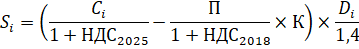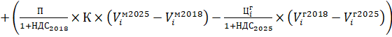 - средневзвешенная цена на газ с учетом расходов на его транспортировку и с учетом налога на добавленную стоимость в i-м квартале 2025 года, рублей за 1 тыс. куб. метров;