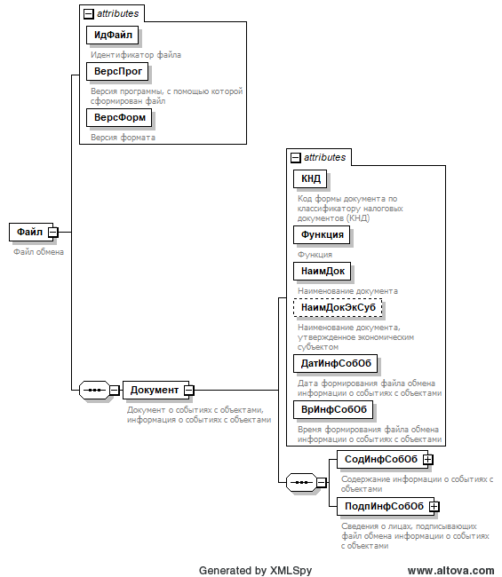 Документ о событиях с объектами включает один обязательный файл обмена: