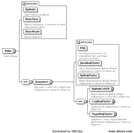 | Время формирования файла обмена информации о принятии объектов | ВрИнфПрАкт | A | T(=8) | О | Типовой элемент <ВремяТип>. Время в формате ЧЧ:ММ:СС |