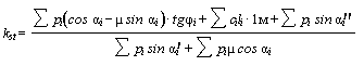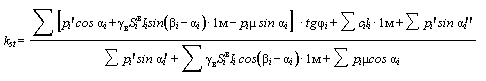 5.7.22 Допускается также определять коэффициент устойчивости склона с учетом сейсмического воздействия без разбиения оползневого массива на отсеки исходя из величин нормального и касательного напряжений на элементарных площадках вдоль потенциальной кривой скольжения или методом снижения прочностных характеристик.