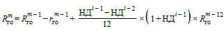 - размер средств на возмещение капитальных затрат по состоянию на начало расчетного периода, наступившего за 12 месяцев до текущего расчетного периода. Если расчетный период m входит в число первых двенадцати расчетных периодов, начиная с расчетного периода, в котором затраты поставщика в отношении соответствующего генерирующего объекта начали учитываться при определении надбавки, величина