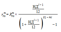 - размер средств на возмещение капитальных затрат по состоянию на начало расчетного периода m;