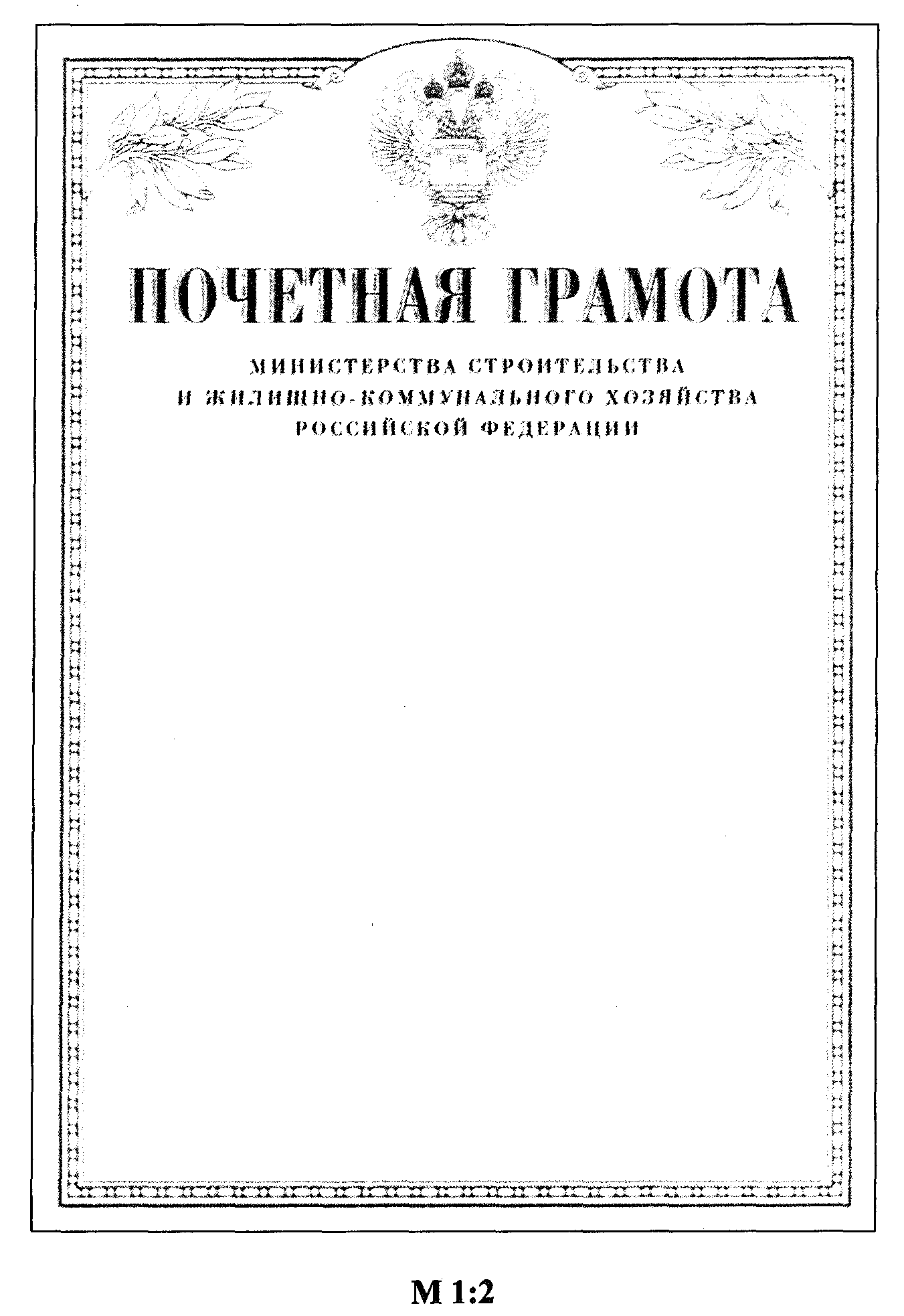 б) описание и рисунок бланка Почетной грамоты Министерства строительства и жилищно-коммунального хозяйства Российской Федерации согласно приложению № 2 к настоящему приказу.