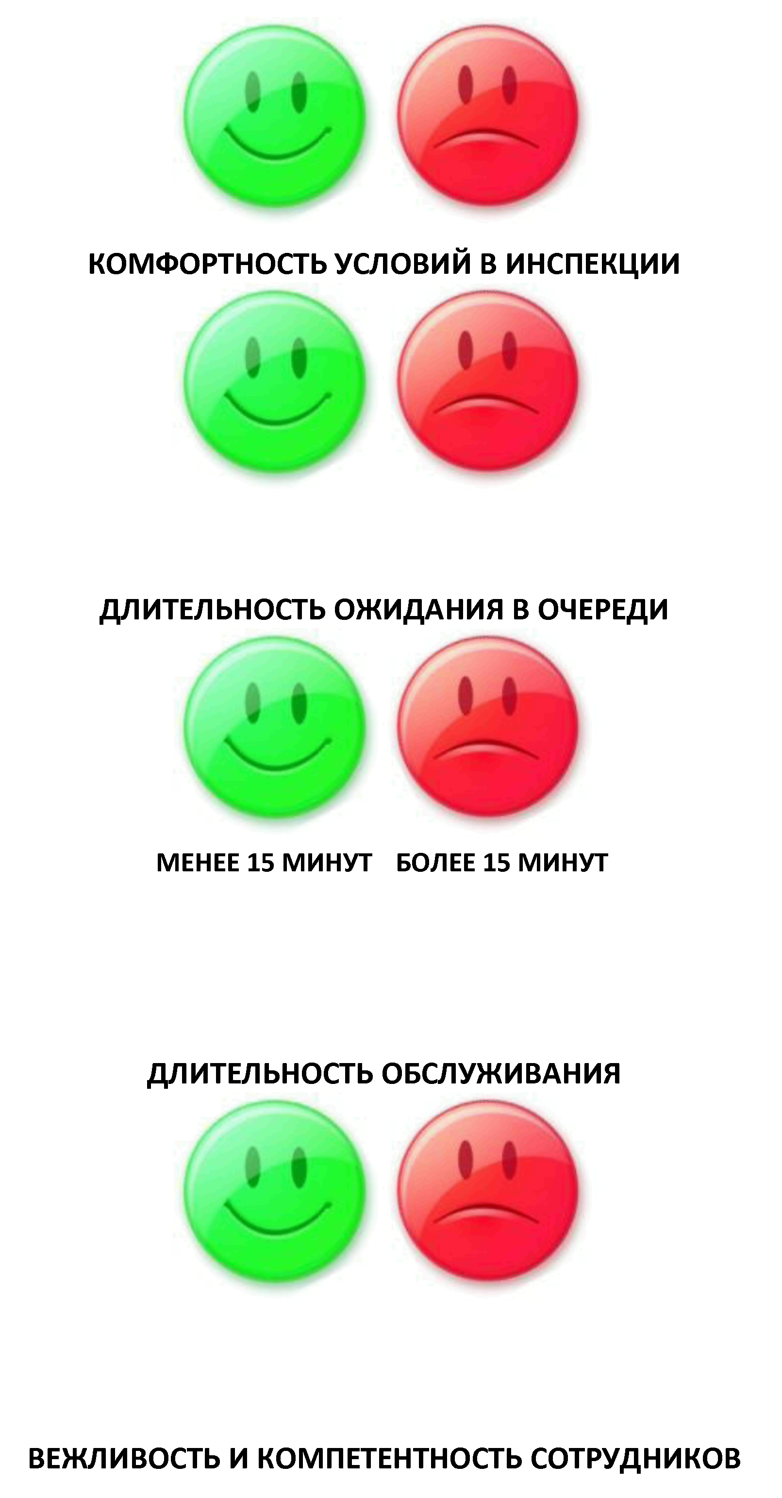 4.5. В анкете налогоплательщик может оценить качество обслуживания в налоговом органе (выбрать веселый смайлик/грустный смайлик) по следующим критериям: