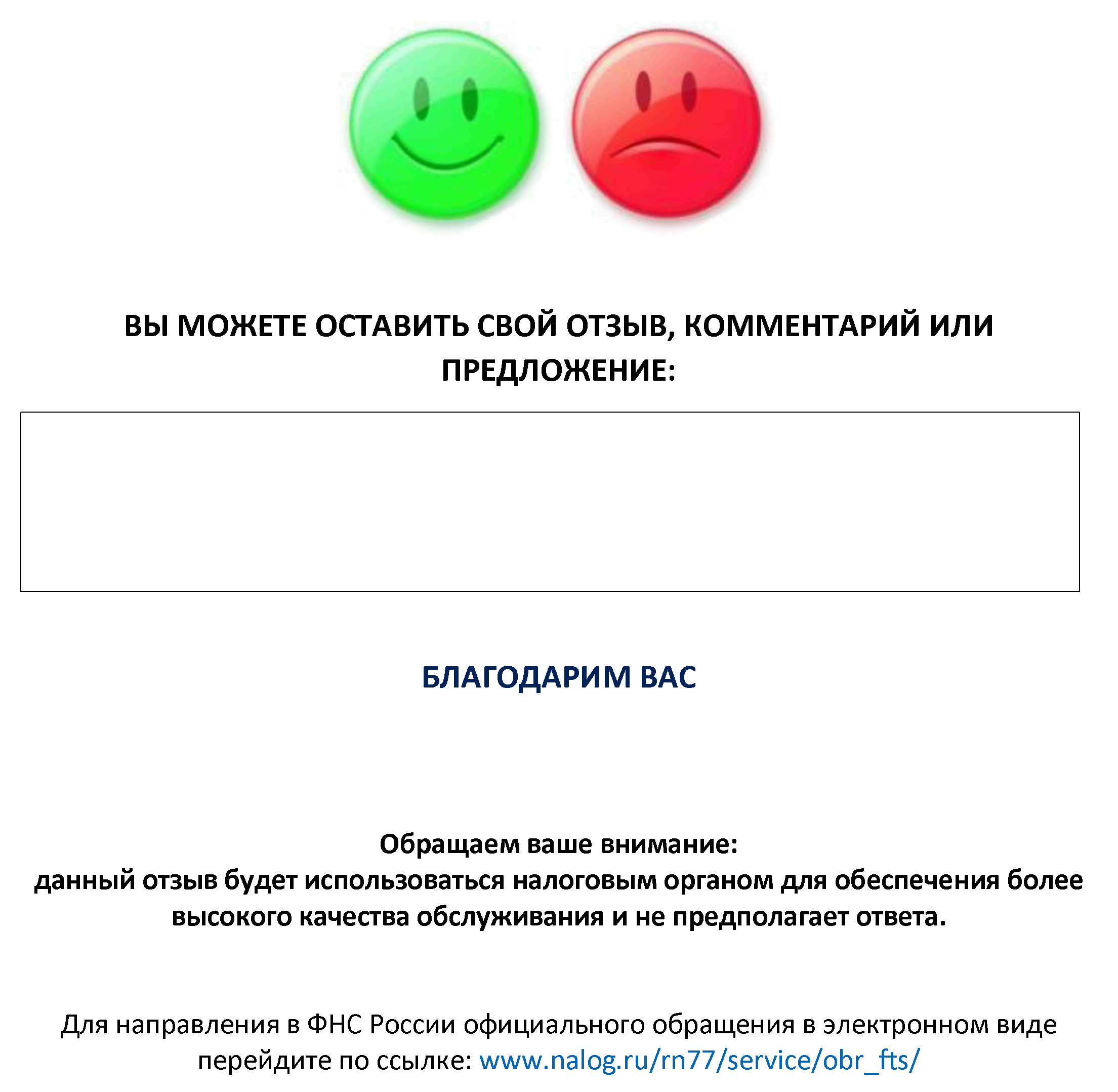 4.7. Налогоплательщик может направить свой отзыв, комментарий или предложение без оценки качества обслуживания в налоговом органе по вышеуказанным критериям.