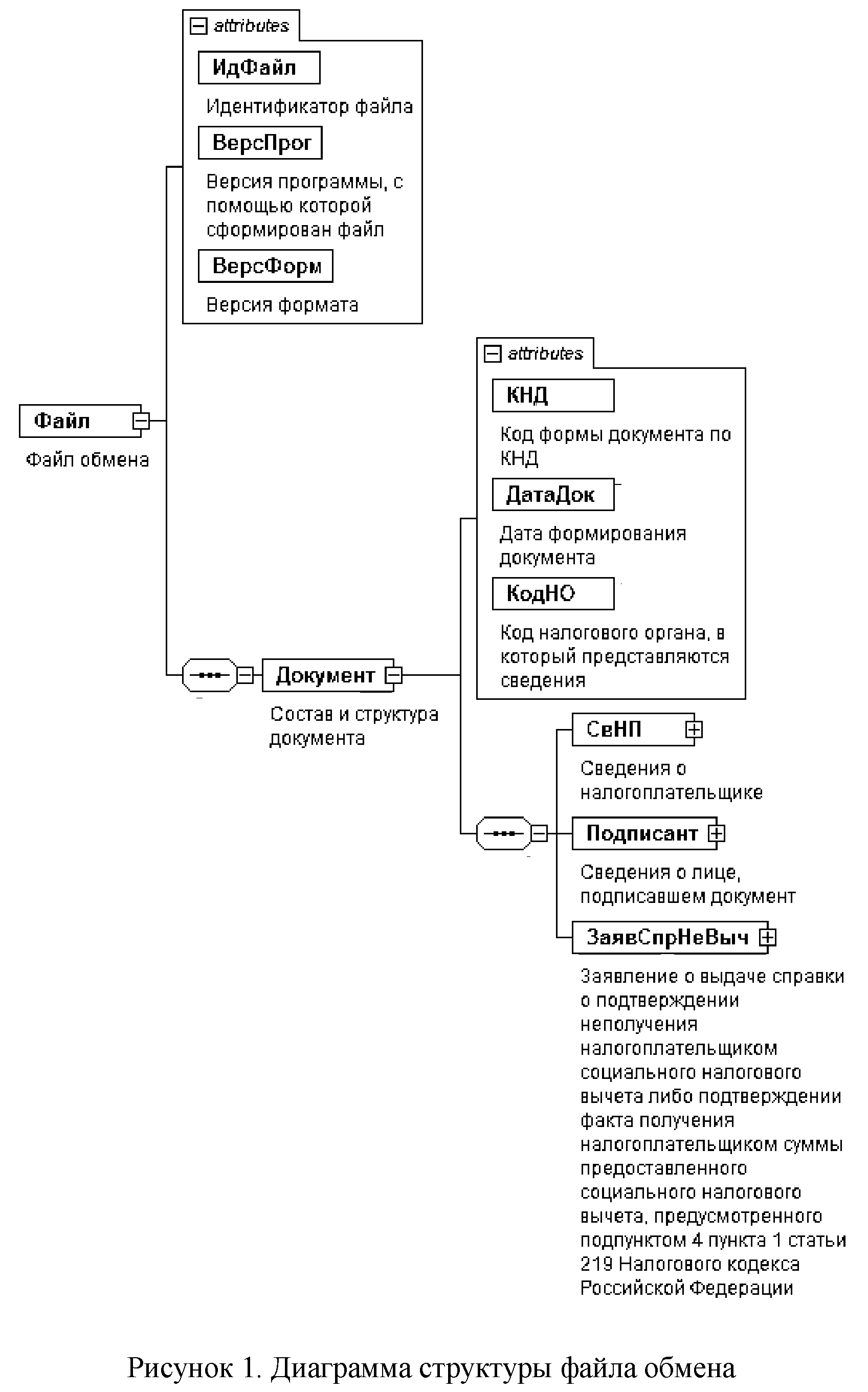 | Заявление о подтверждении права налогоплательщика на получение социальных налоговых вычетов, предусмотренных подпунктами 2 и 3 пункта 1 статьи 219 Налогового кодекса Российской Федерации | ЗаявПравСНВ | С | О | Состав элемента представлен в таблице 4.6 |