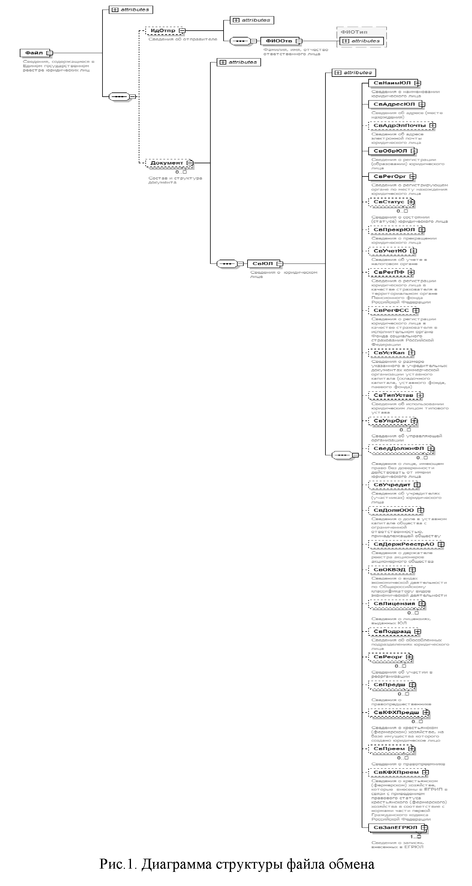 | Сведения о юридическом лице | СвЮЛ | С | О | Состав элемента представлен в табл. 4.4 |