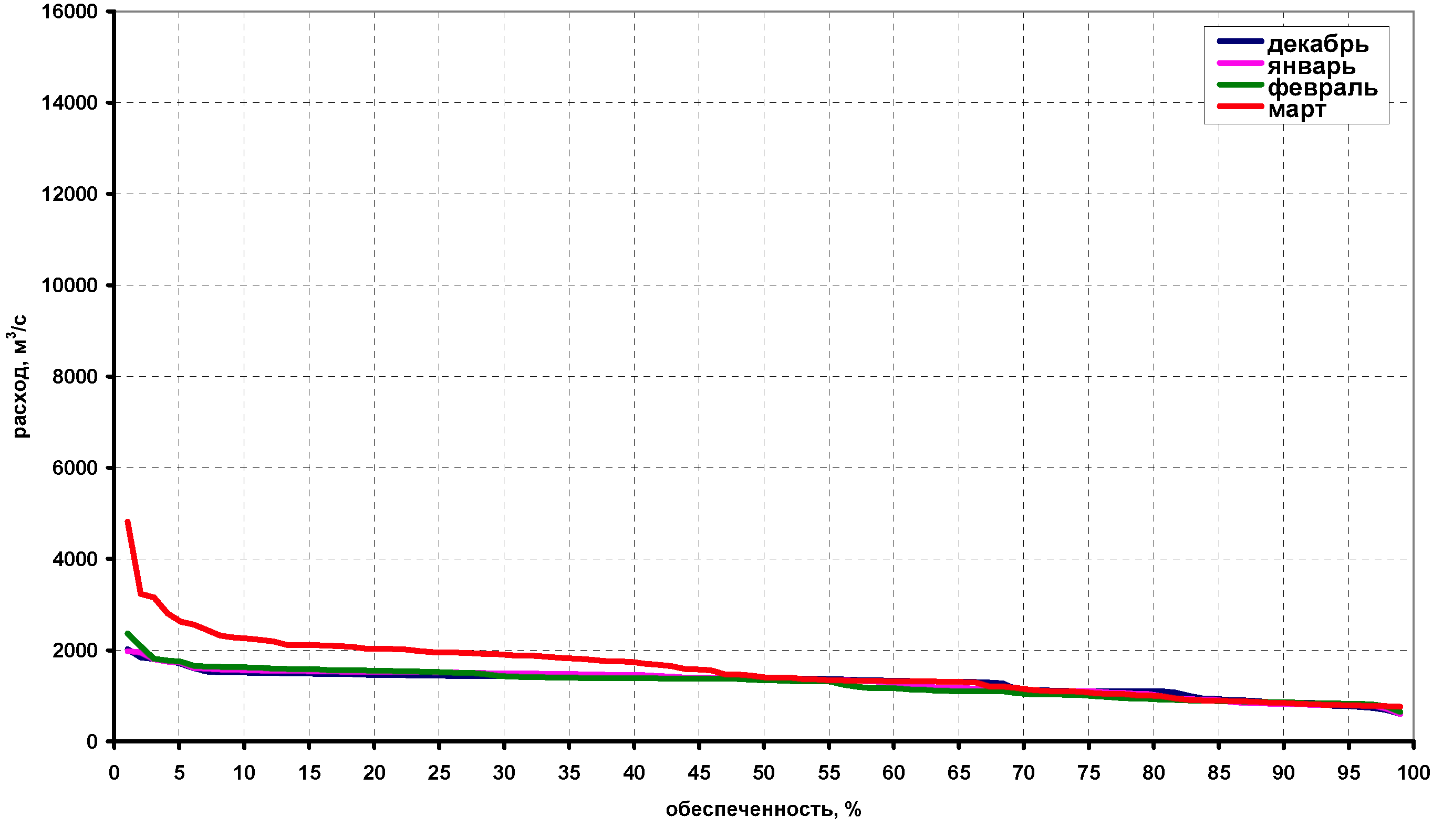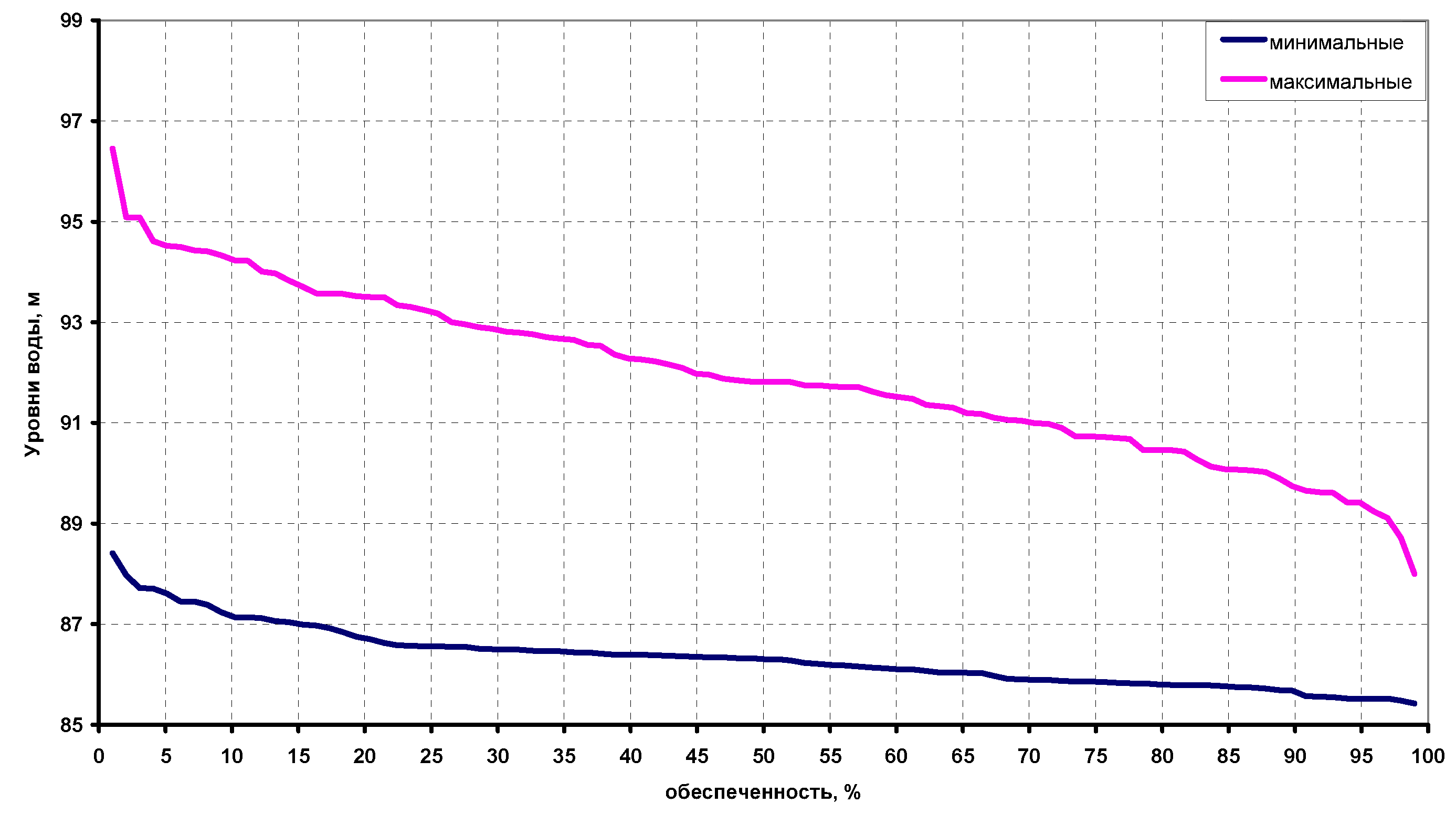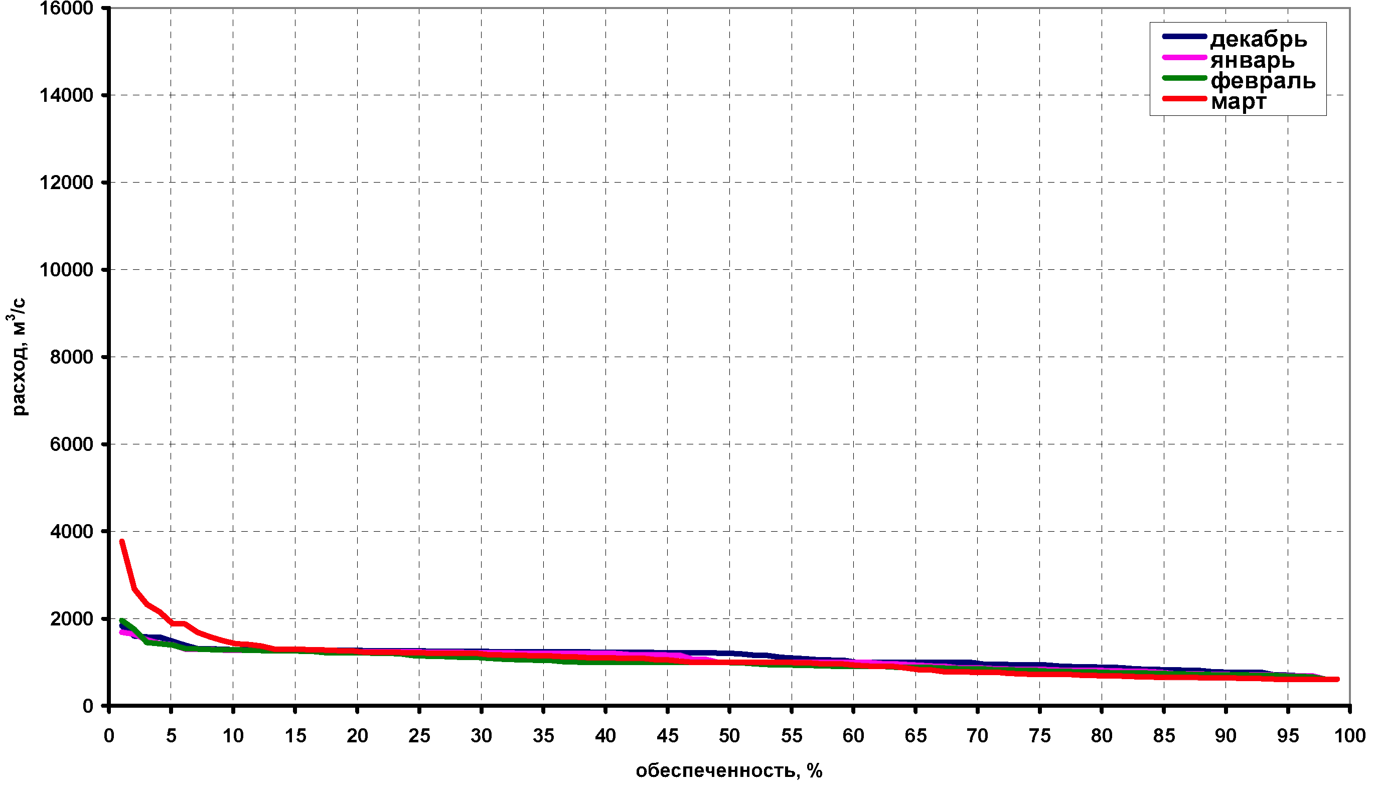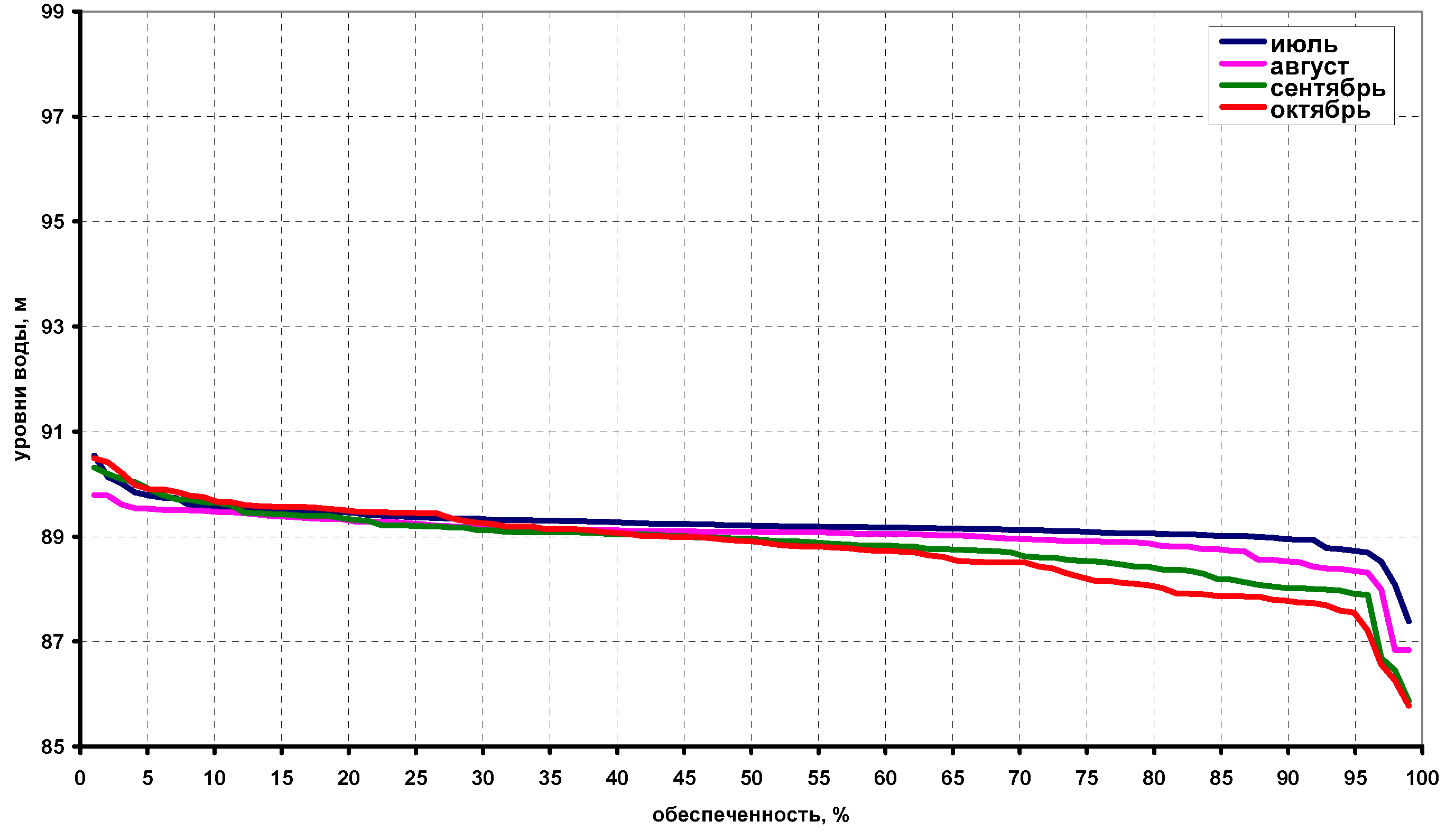 Обеспеченность объемов суммарного годового стока в створе Воткинского гидроузла характеризуется следующими величинами: