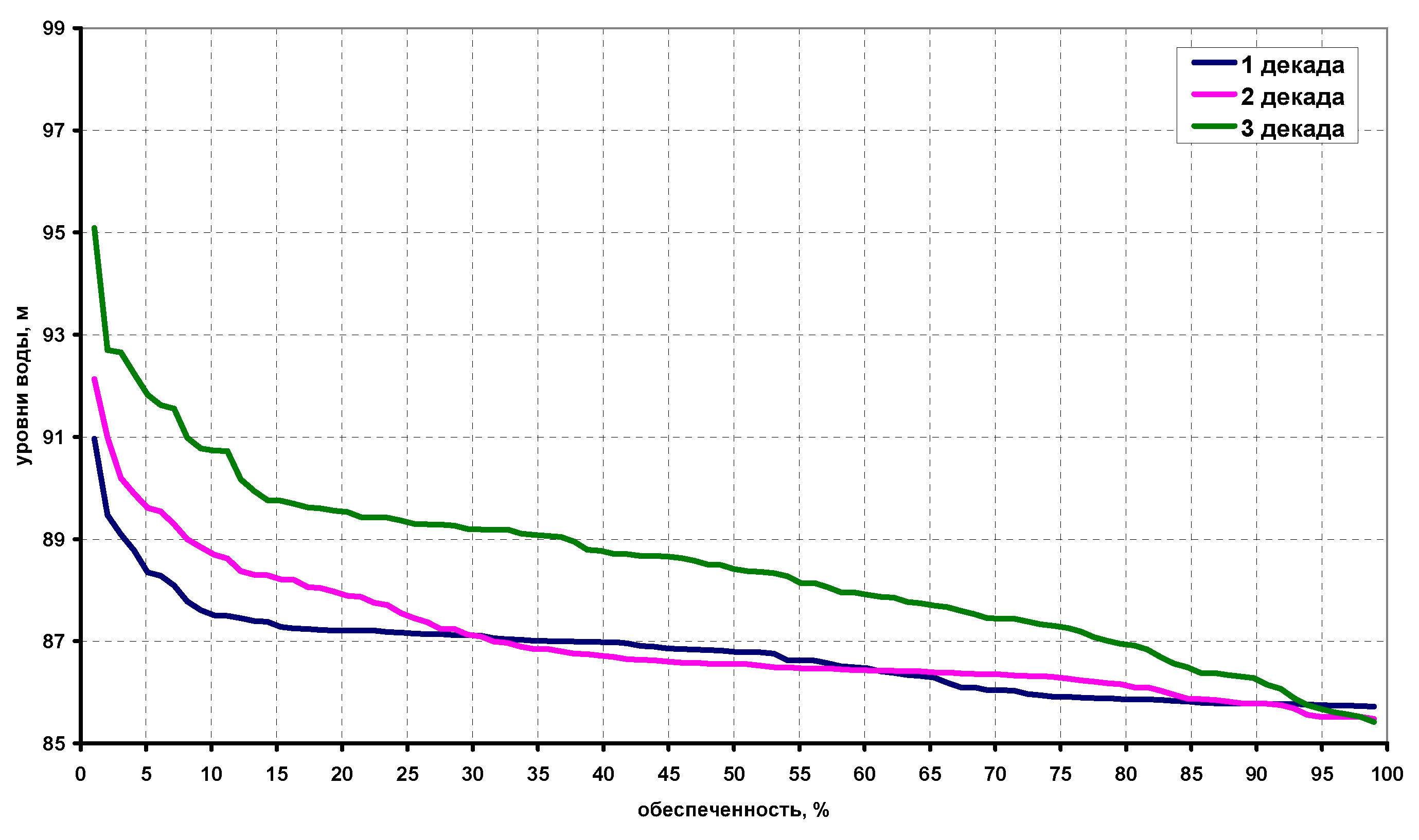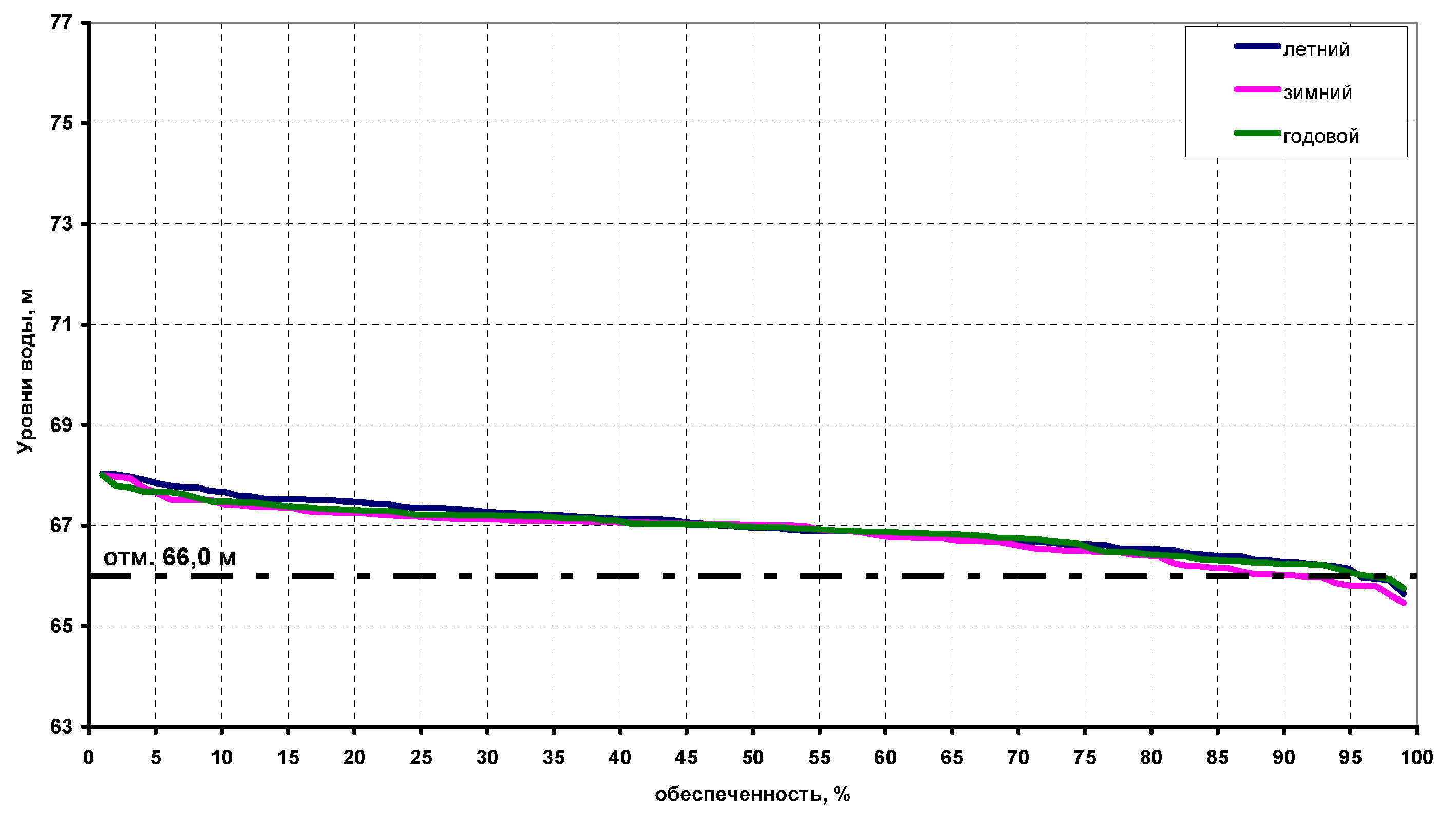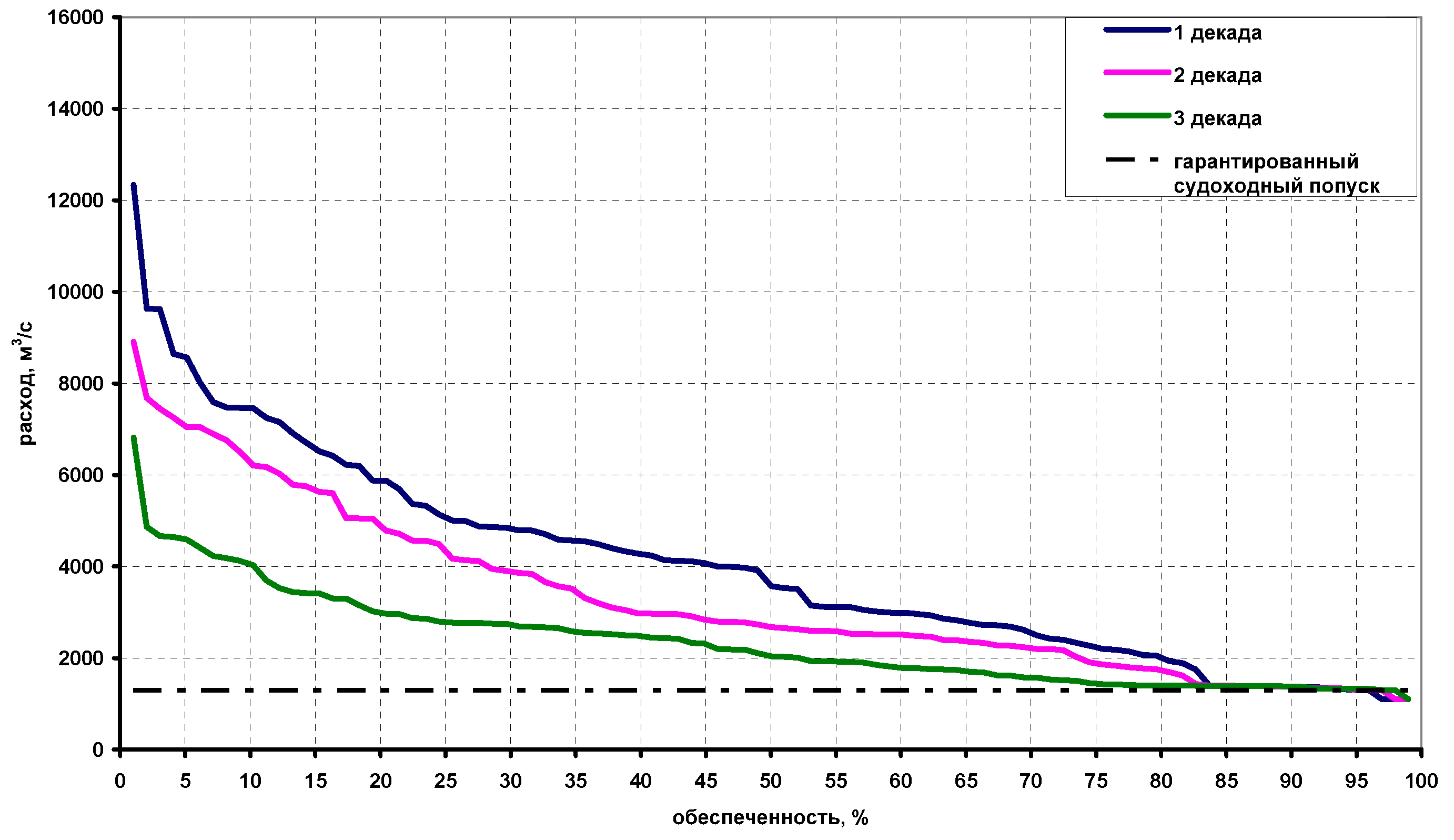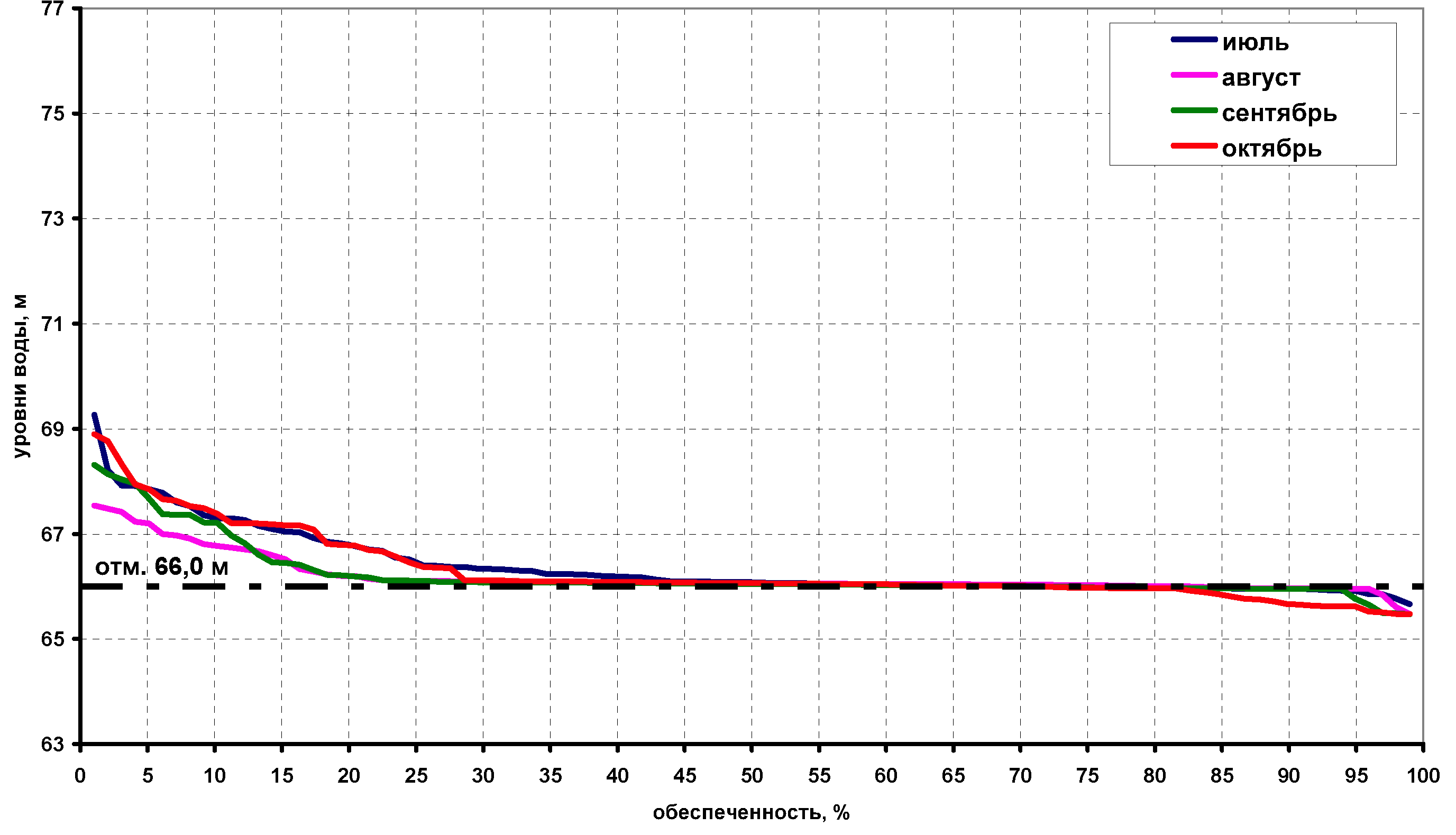 Обеспеченность объемов суммарного годового стока в створе Воткинского гидроузла характеризуется следующими величинами: