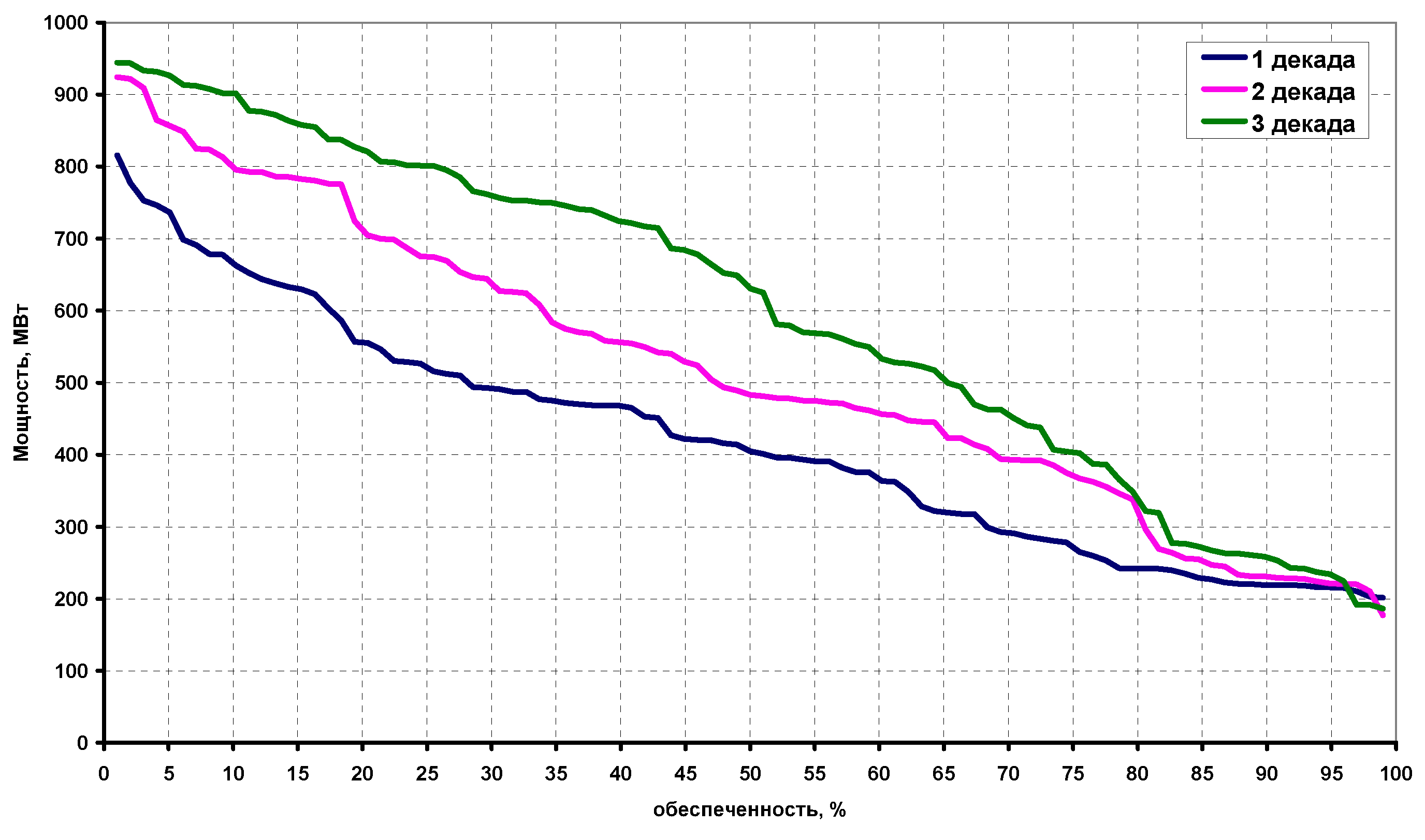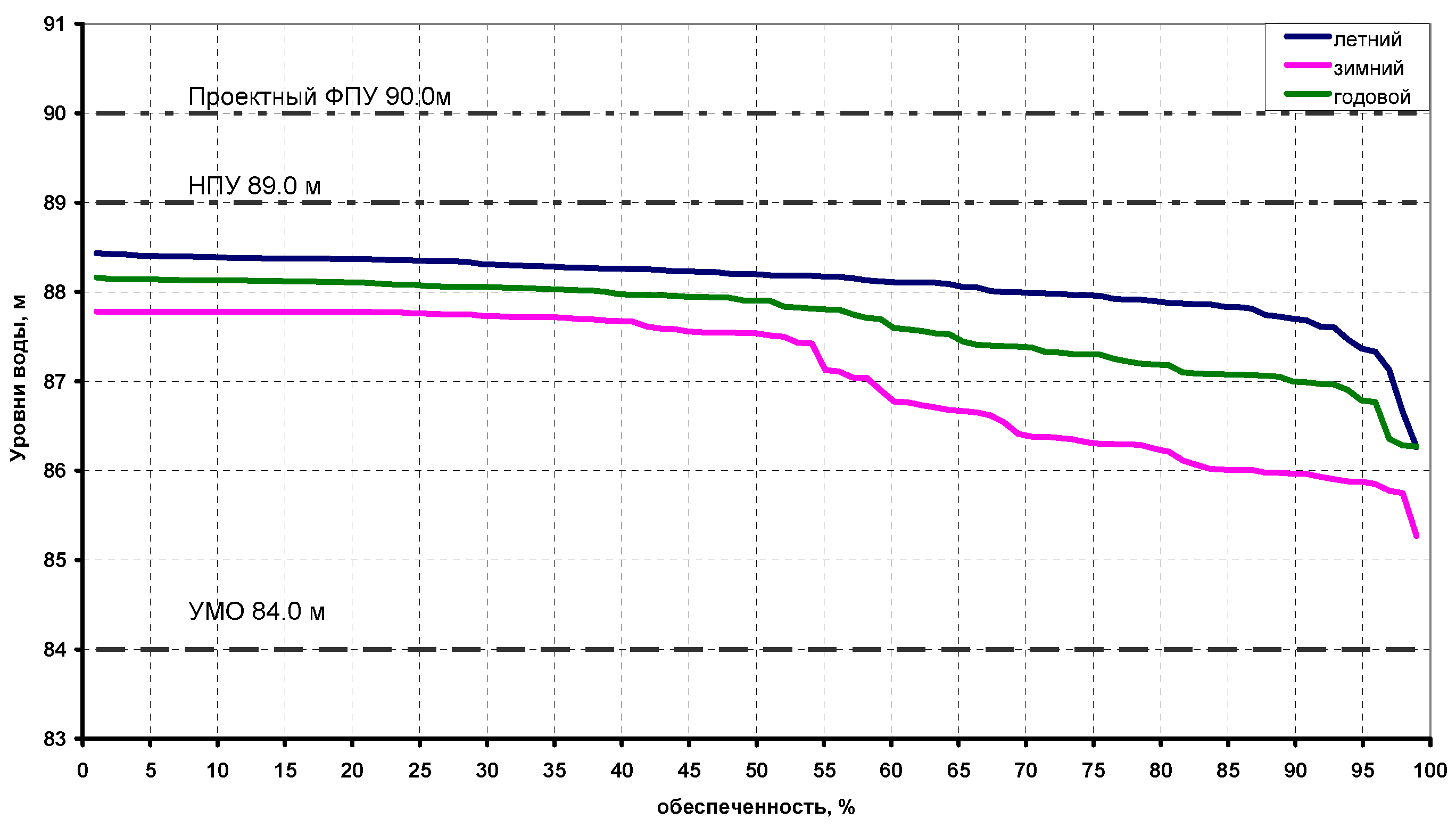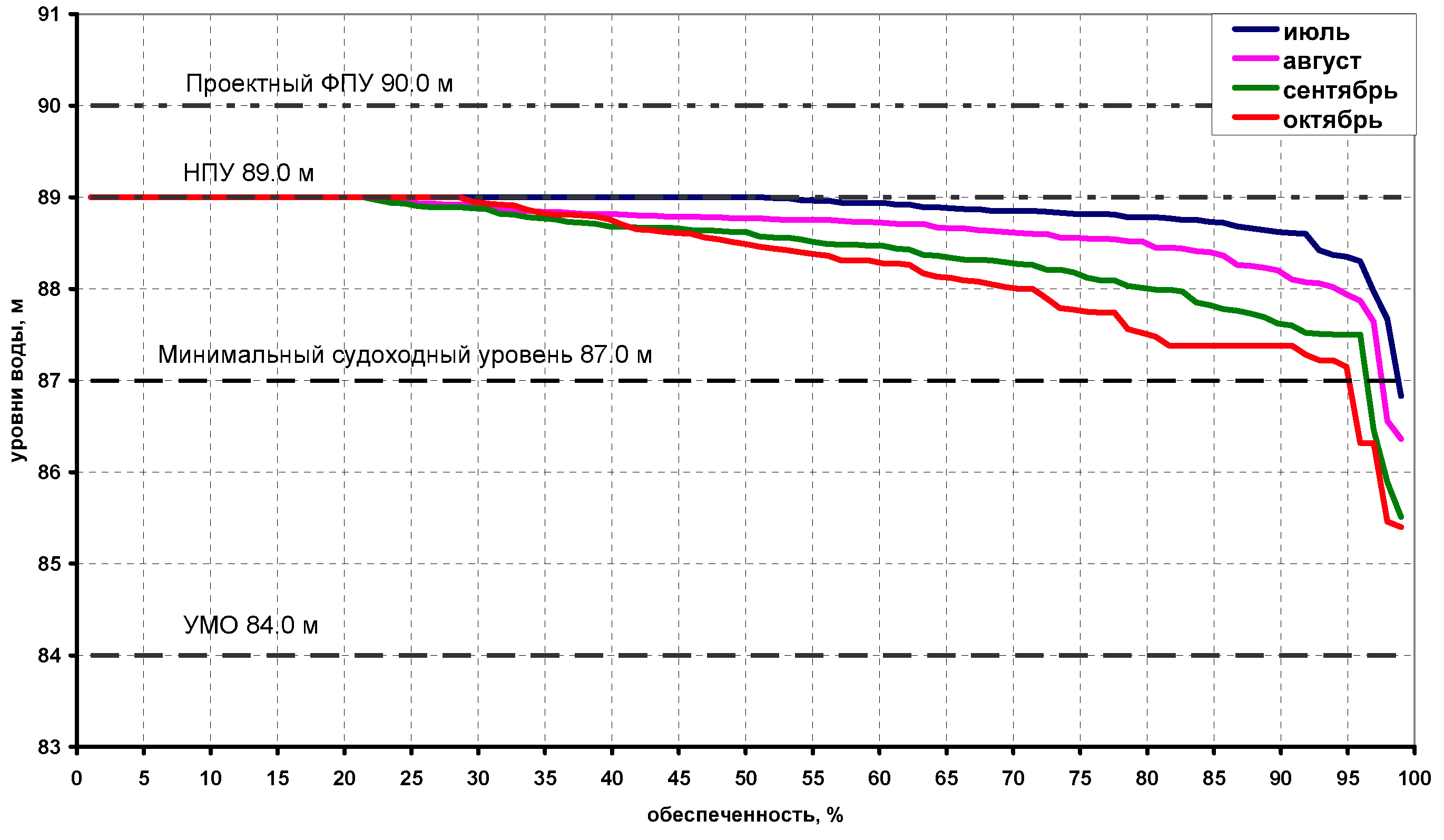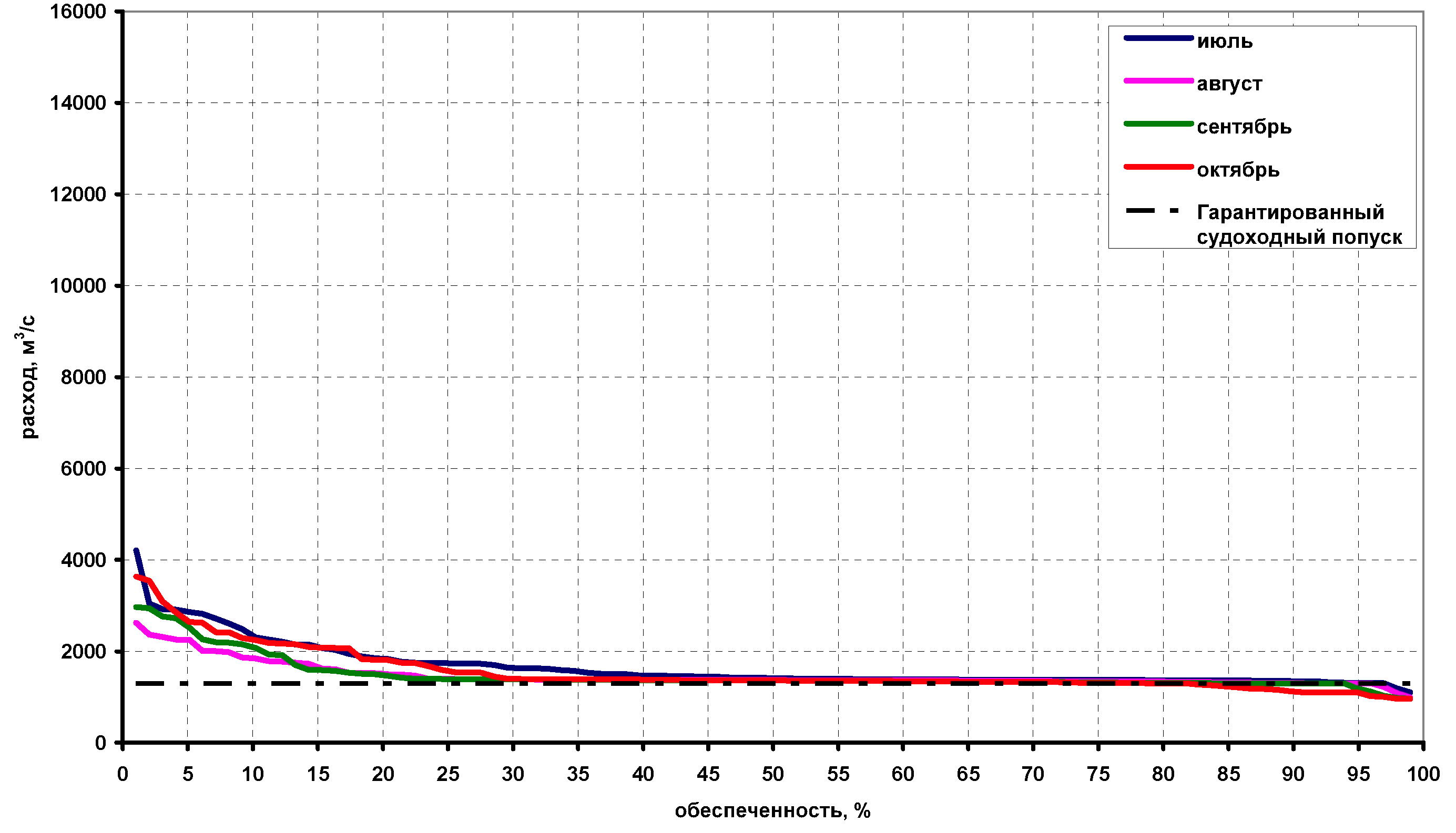 Обеспеченность объемов суммарного годового стока в створе Воткинского гидроузла характеризуется следующими величинами: