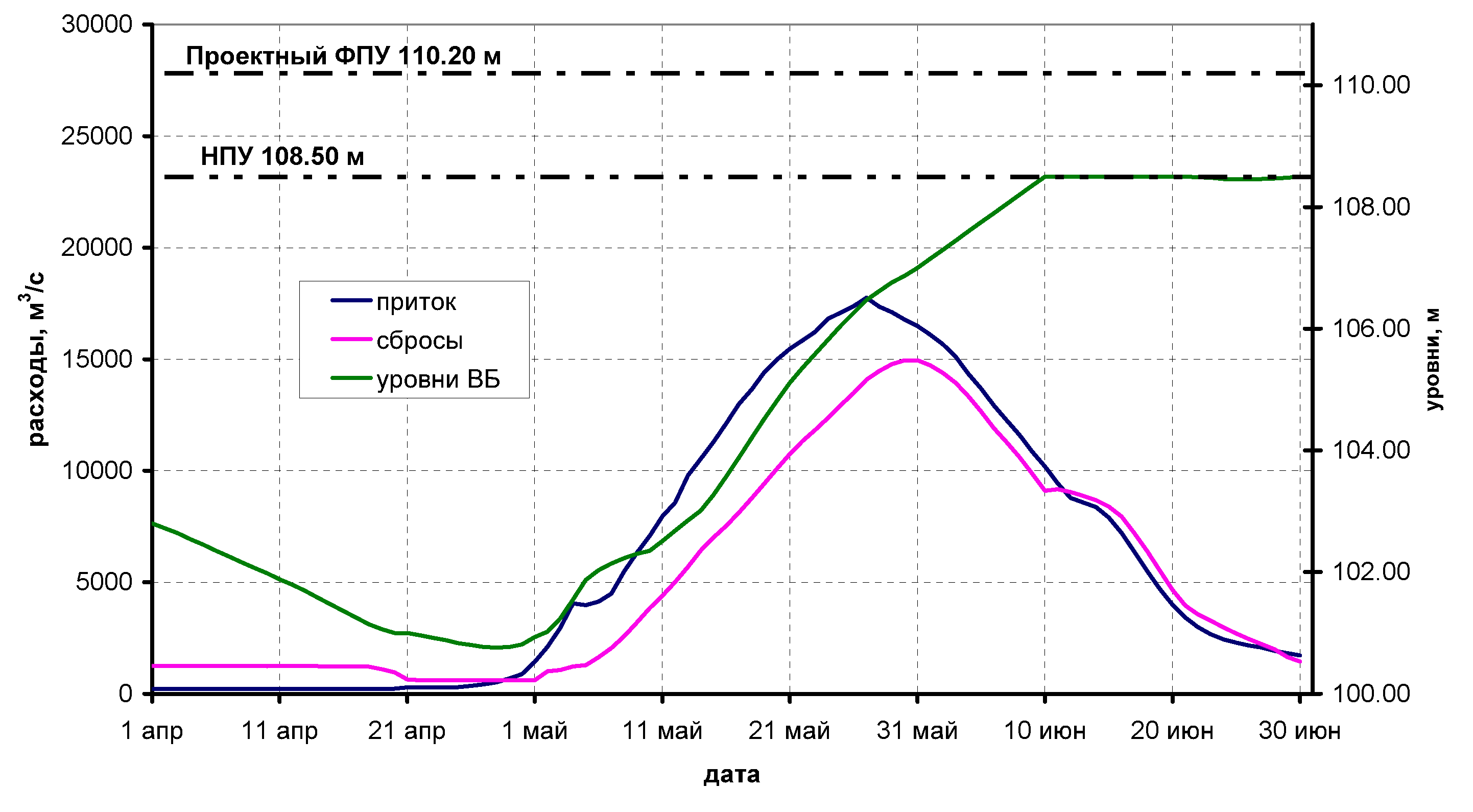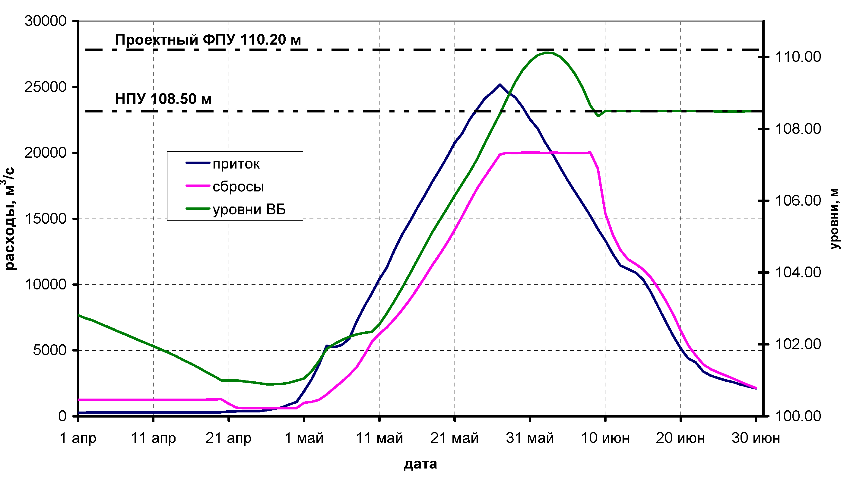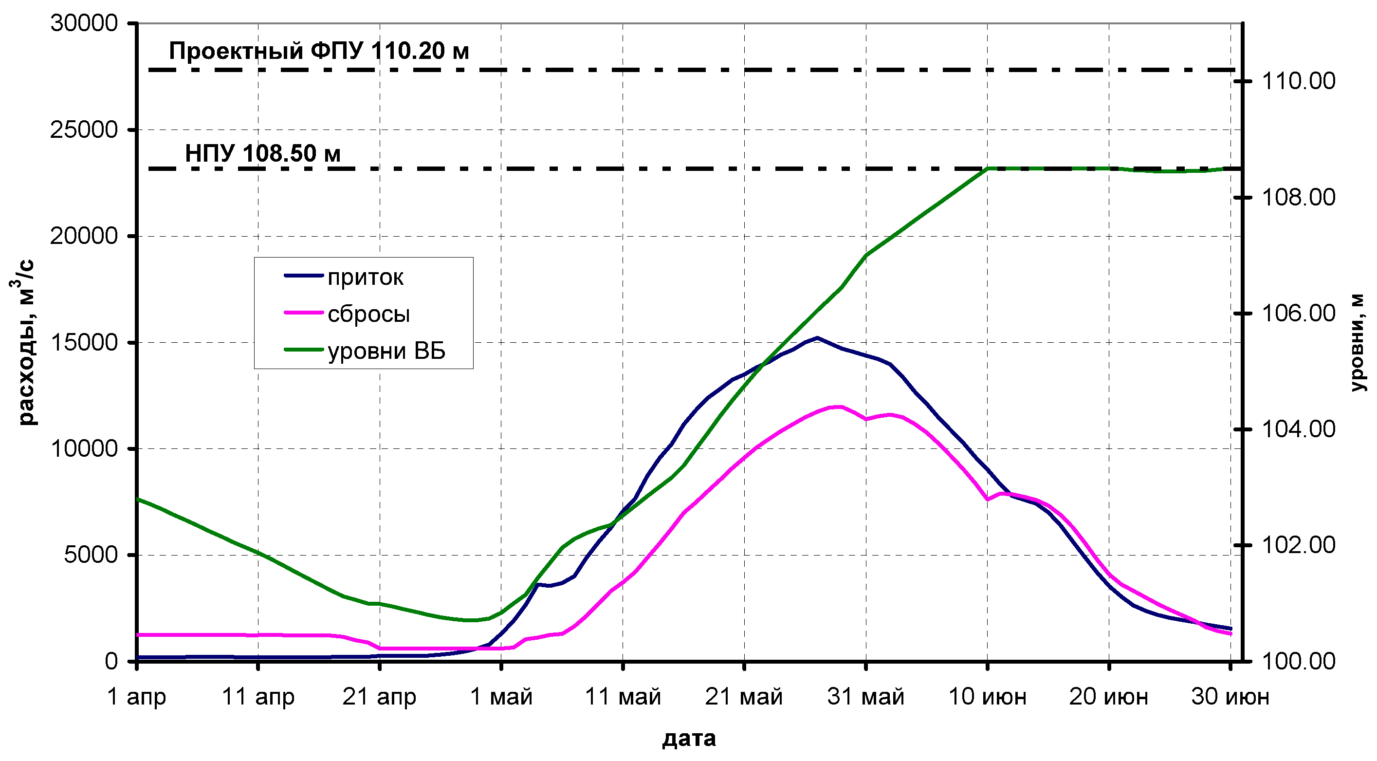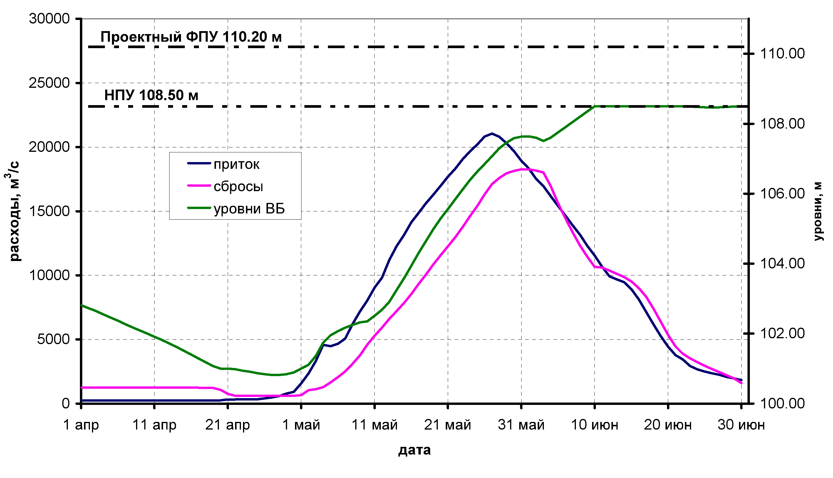 При этом должны быть соблюдены условия, обеспечивающие бесперебойную работу водозаборных сооружений, сохранение и воспроизводство рыбных запасов, возможную срезку пиков половодий и паводков.