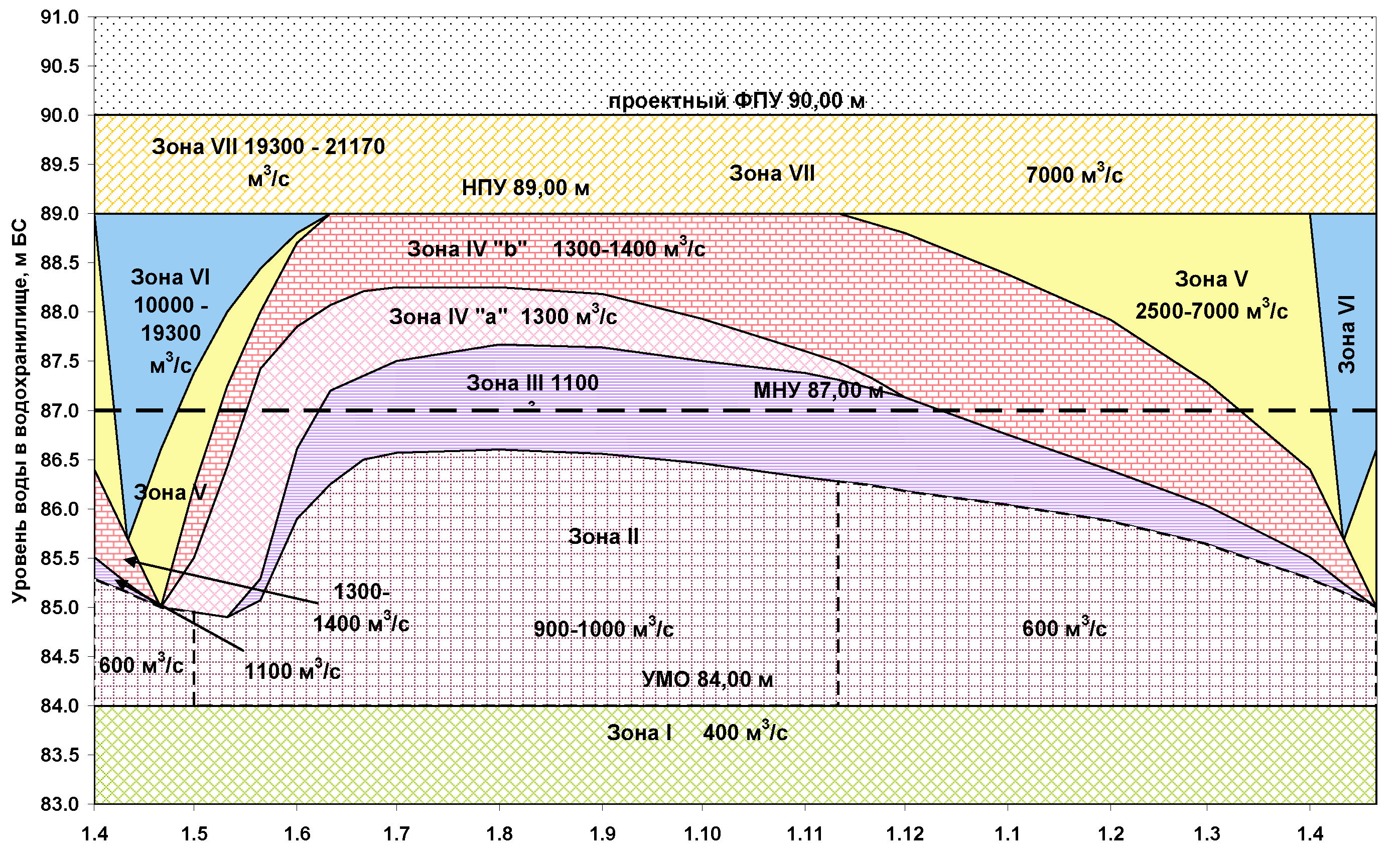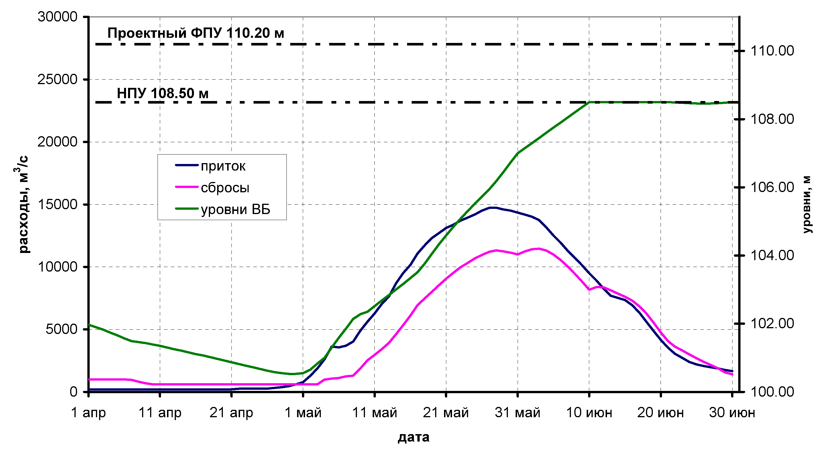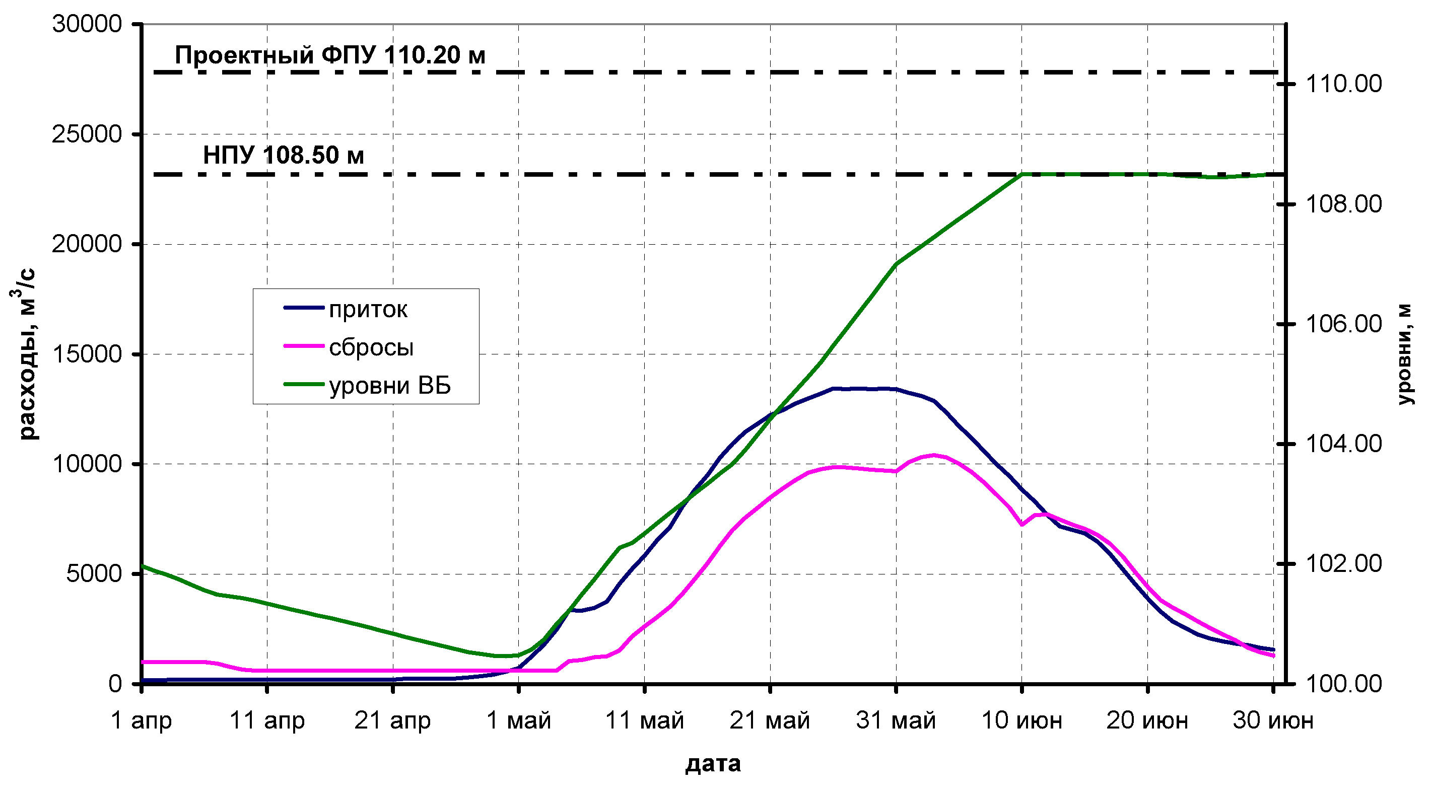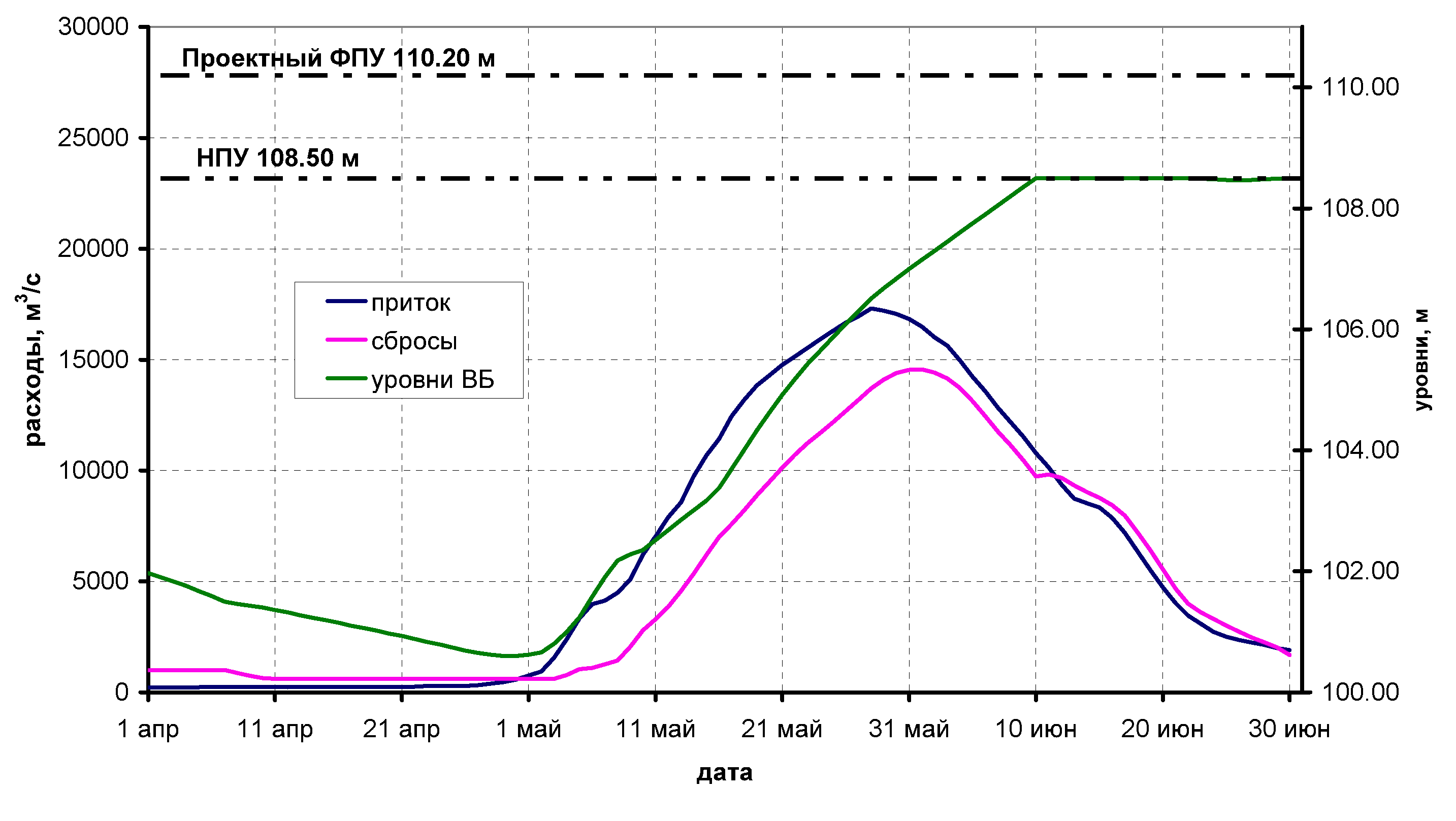 При этом должны быть соблюдены условия, обеспечивающие бесперебойную работу водозаборных сооружений, сохранение и воспроизводство рыбных запасов, возможную срезку пиков половодий и паводков.
