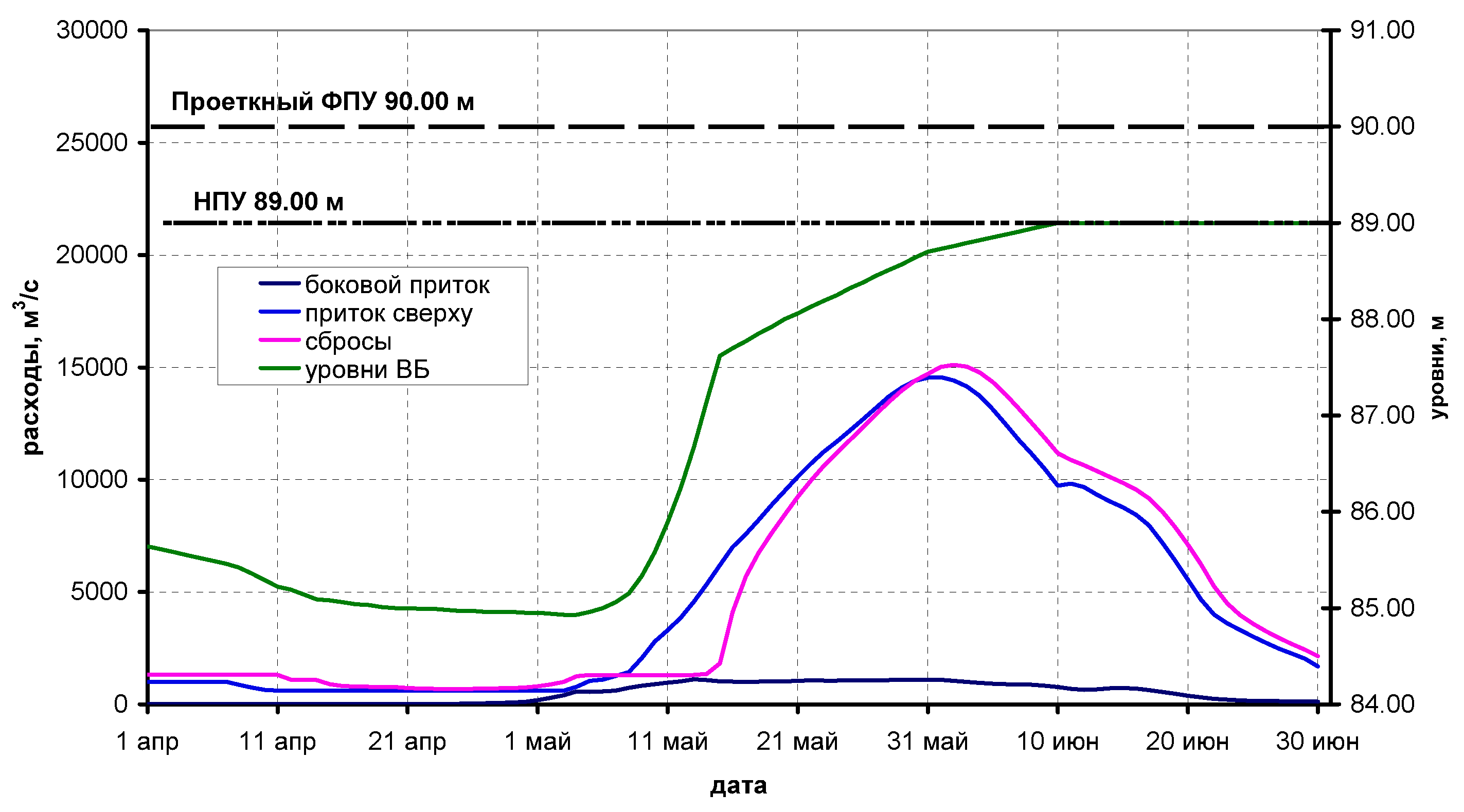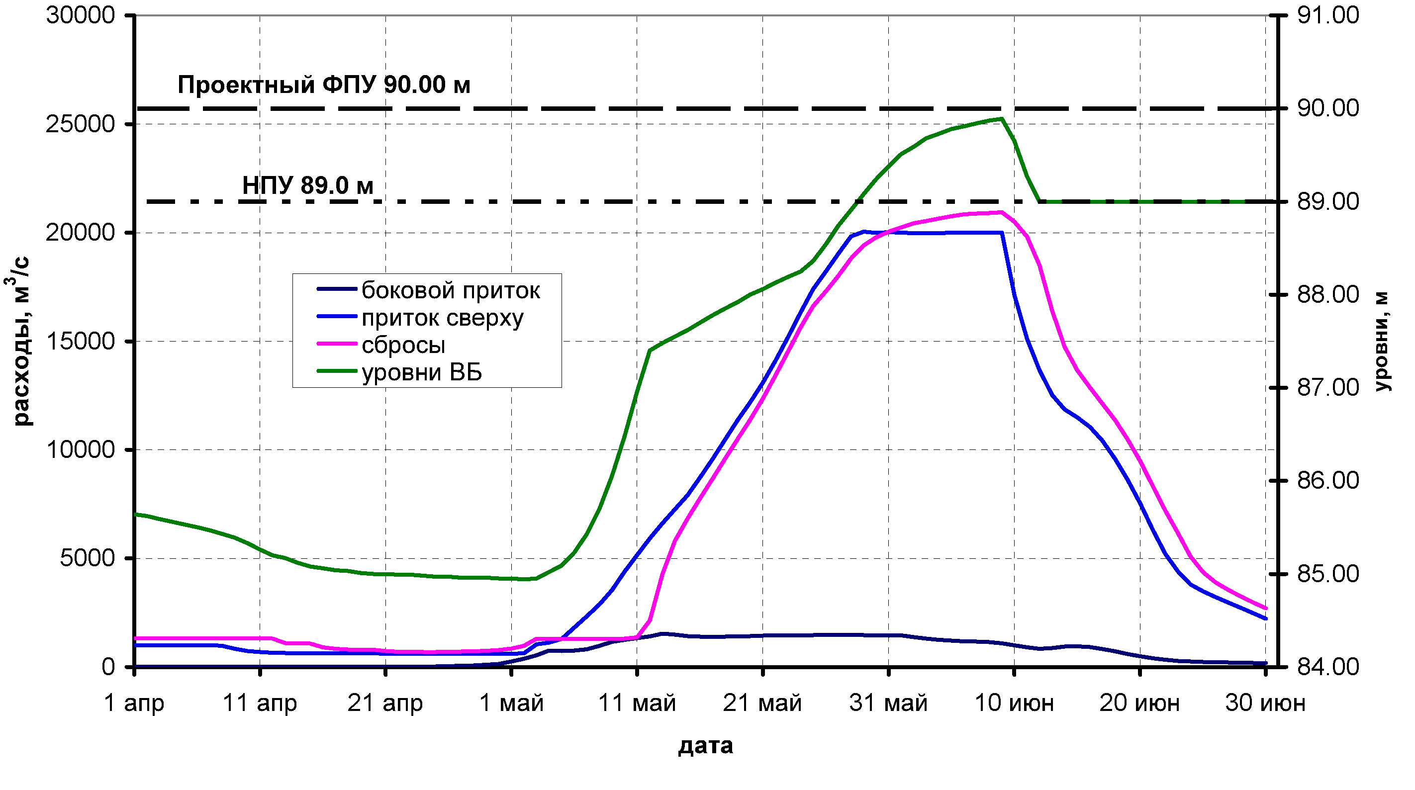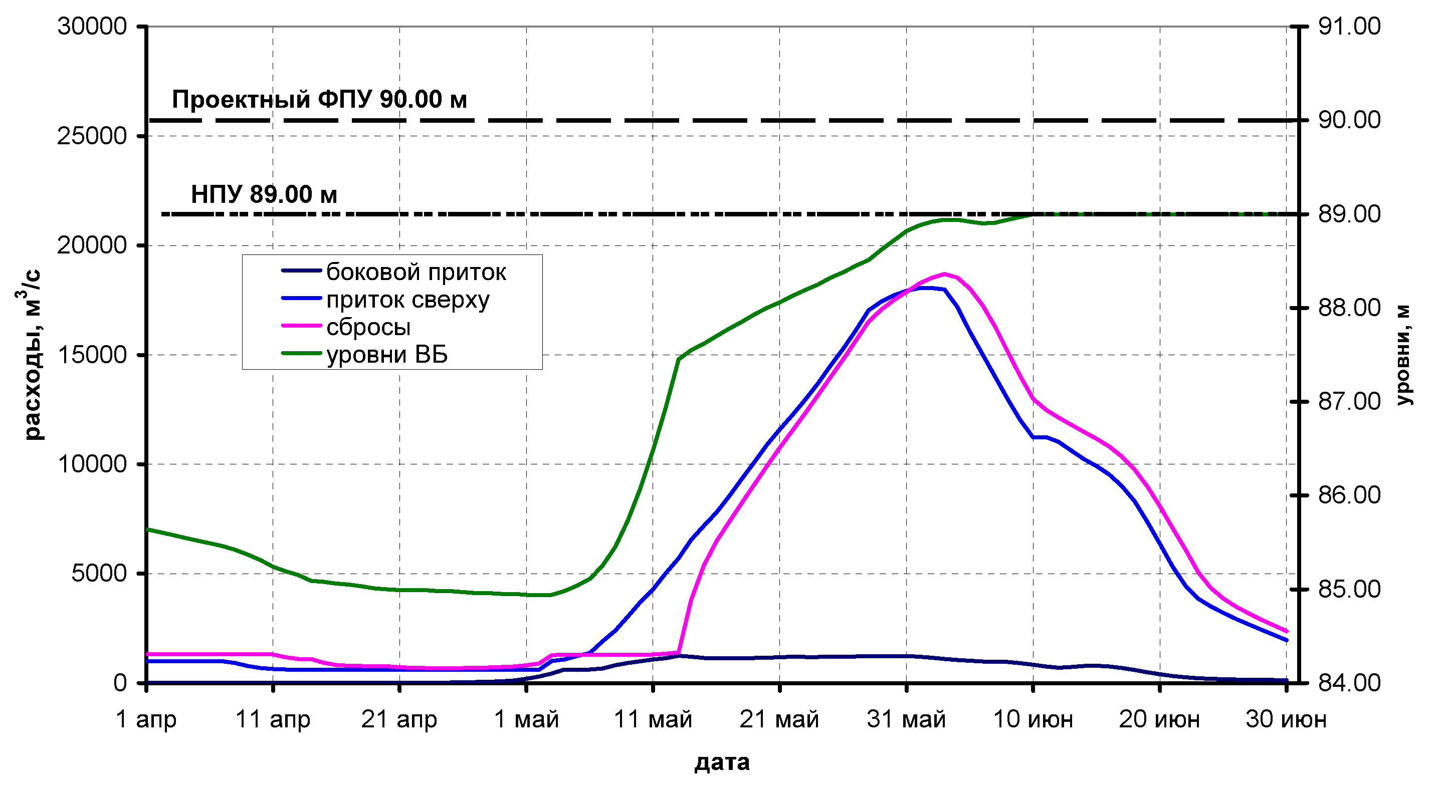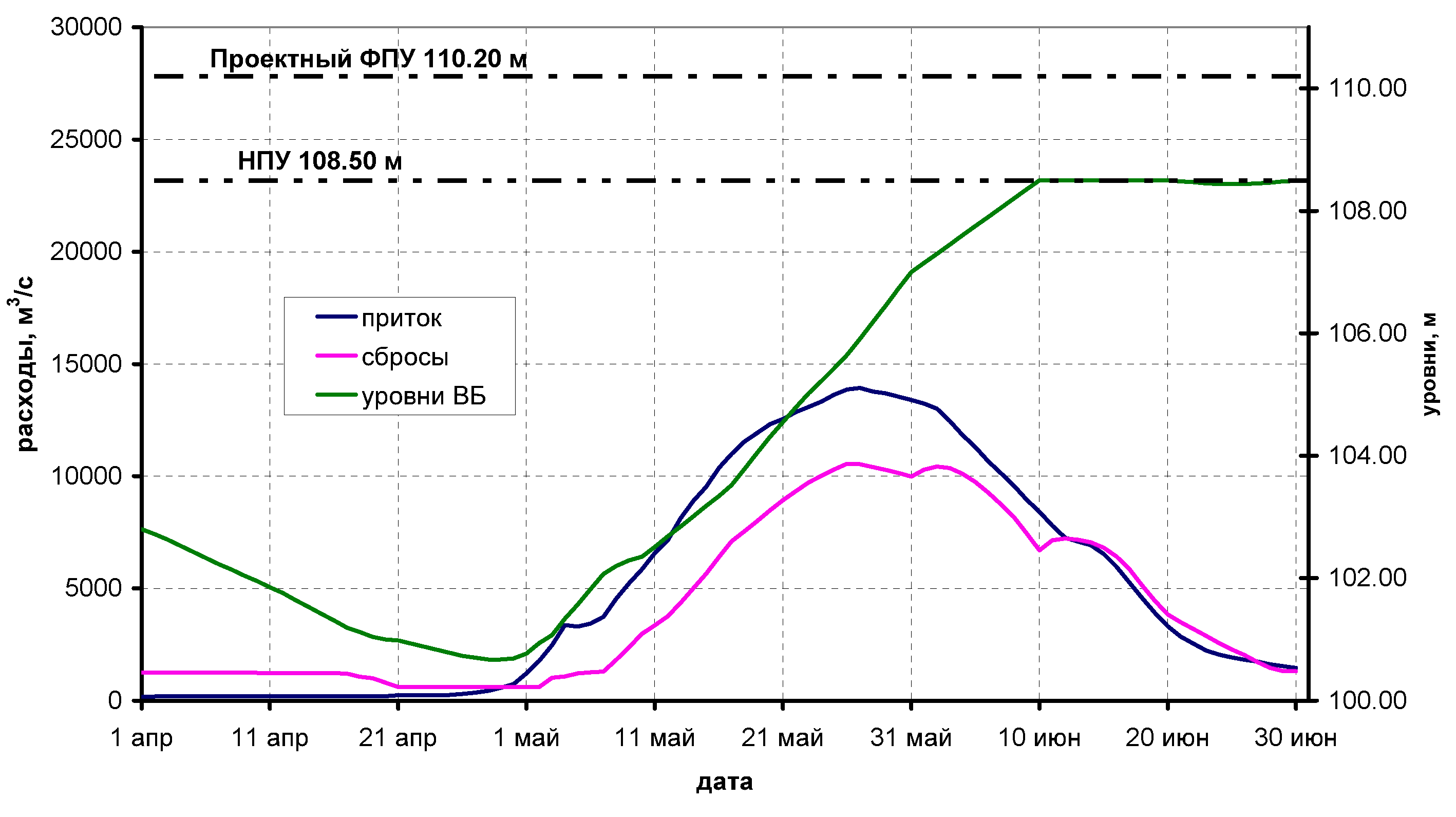 При этом должны быть соблюдены условия, обеспечивающие бесперебойную работу водозаборных сооружений, сохранение и воспроизводство рыбных запасов, возможную срезку пиков половодий и паводков.
