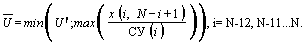 8. Для каждого периода наступления убытков вычисляются коэффициенты полученных поступлений по суброгациям и поступлений от реализации годных остатков по страховым убыткам U(i), равные отношению величины полученных на отчетную дату сумм поступлений по суброгациям и поступлений от реализации годных остатков по страховым убыткам с учетом их последующего развития к величине состоявшихся убытков за соответствующий период: