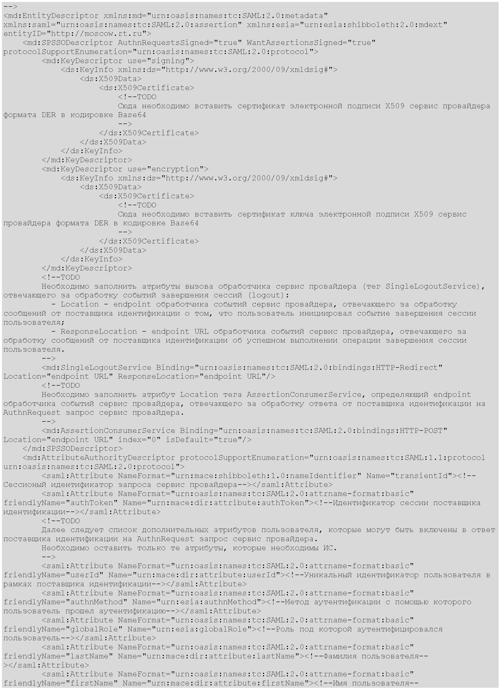 | 2.1 | - | - | Внесены исправления в документ: - уточнено описание процедуры подписания запроса при аутентификаци с помощью протокола SAML; - уточнено описание перечня SAML-атрибутов; - уточнено описание электронного сервиса по регистрации пользователей ЕСИА, опубликованного в СМЭВ (добавлено описание процедуры получения доступа к сервису, добавлены идентификаторы сервиса ЕСИА в СМЭВ, уточнено описание метода восстановления доступа); - уточнено описание областей доступа (scope), используемых программными интерфейсами на основе REST. |