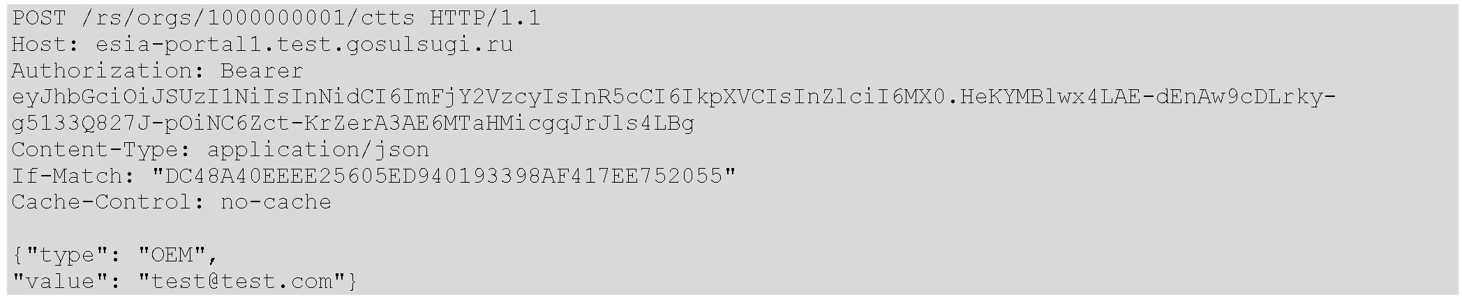 При указании контактов необходимо передавать только один тип контакта (email или mobile) для идентификации заявки на подтверждение учетной записи.