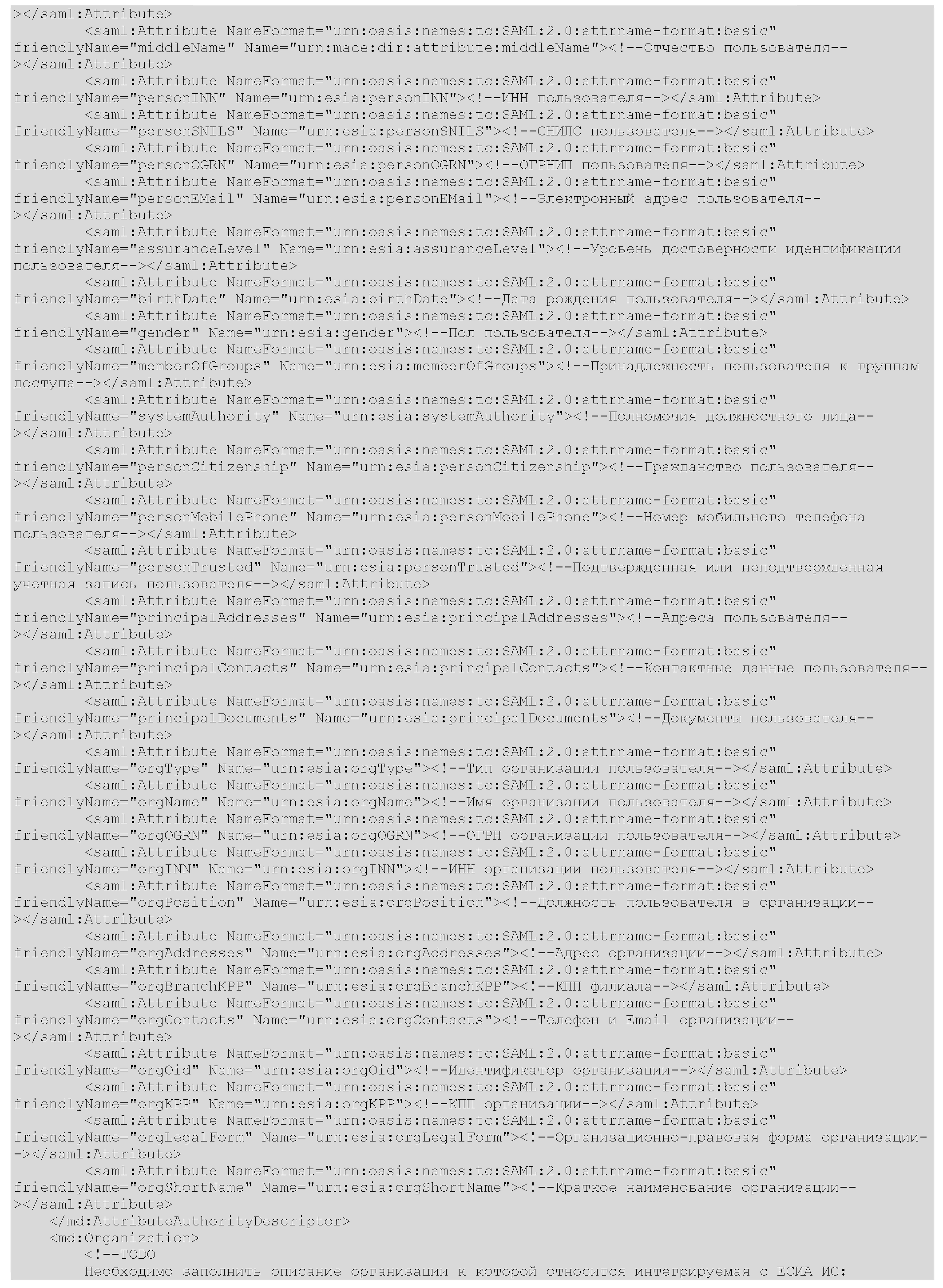 | 2.1 | - | - | Внесены исправления в документ: - уточнено описание процедуры подписания запроса при аутентификаци с помощью протокола SAML; - уточнено описание перечня SAML-атрибутов; - уточнено описание электронного сервиса по регистрации пользователей ЕСИА, опубликованного в СМЭВ (добавлено описание процедуры получения доступа к сервису, добавлены идентификаторы сервиса ЕСИА в СМЭВ, уточнено описание метода восстановления доступа); - уточнено описание областей доступа (scope), используемых программными интерфейсами на основе REST. |