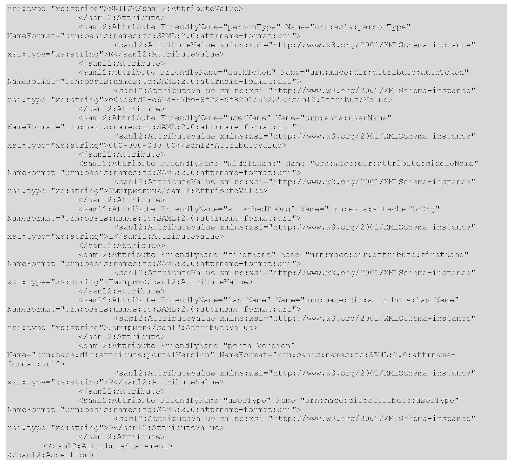 | 7. | snils | СНИЛС пользователя. | Необходимо использовать personSNILS |