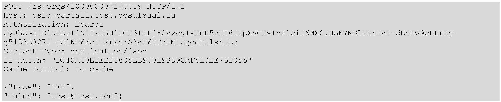 При указании контактов необходимо передавать только один тип контакта (email или mobile) для идентификации заявки на подтверждение учетной записи.