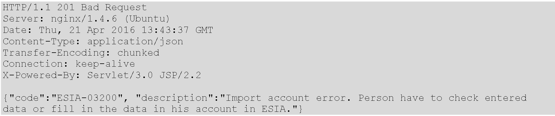 | 4. | Выяснить, по каким причинам регистрация в ЕСИА не прошла успешно | Вызов метода «Проверить заявку на регистрацию учетной записи» для выяснения деталей ошибки и последующий вызов метода «Зарегистрировать подтверждённую учётную запись в ЕСИА с выдачей пароля для первого входа» с исправленными параметрами запроса |