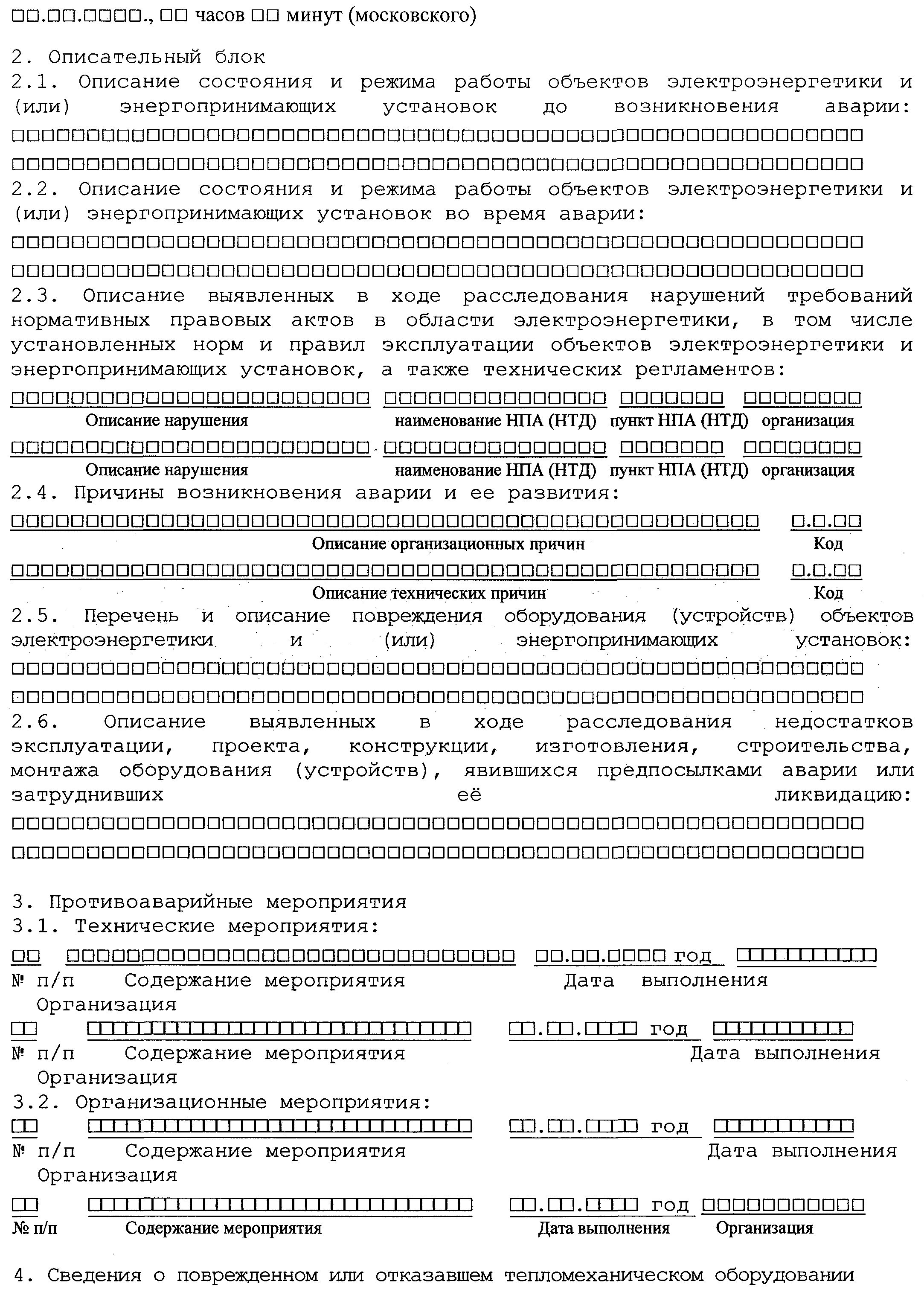 «10. В блоках «Сведения о поврежденном или отказавшем тепломеханическом оборудовании», «Сведения о поврежденном или отказавшем электротехническом оборудовании электростанций и электрических сетей», «Сведения о поврежденном или отказавшем гидроэнергетическом оборудовании» указывается информация о поврежденном и (или) отказавшем тепломеханическом, гидроэнергетическом и электротехническом оборудовании.