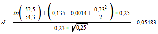 Далее осуществляется расчет коэффициента дельта для опциона на покупку:
