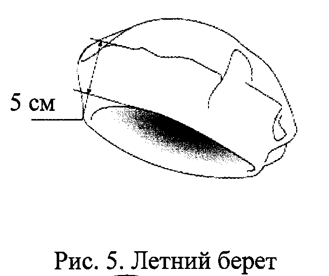 2.5 Летний берет (рис. 5) изготавливается из шерстяного или полушерстяного материала синего или белого цвета. Высота околыша 5 см.