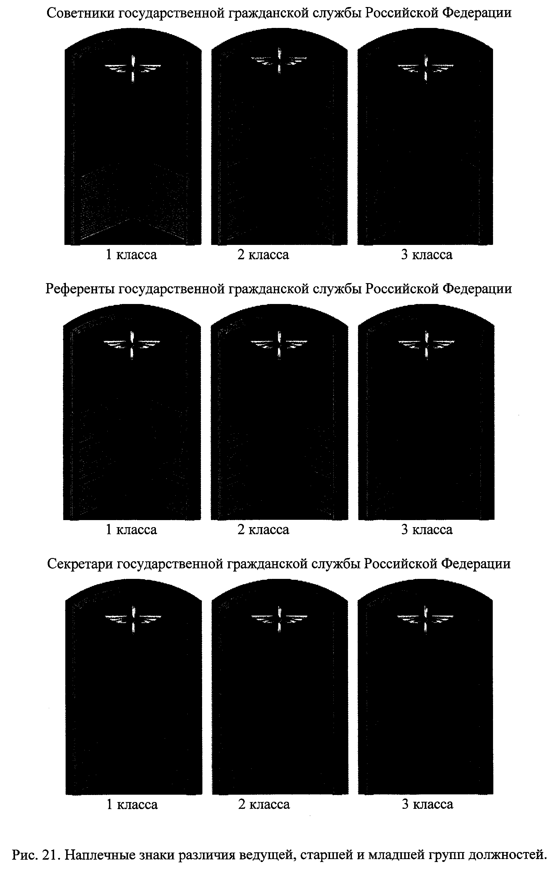 | Группа должностей гражданской службы | Классный чин | Наплечные знаки различия |