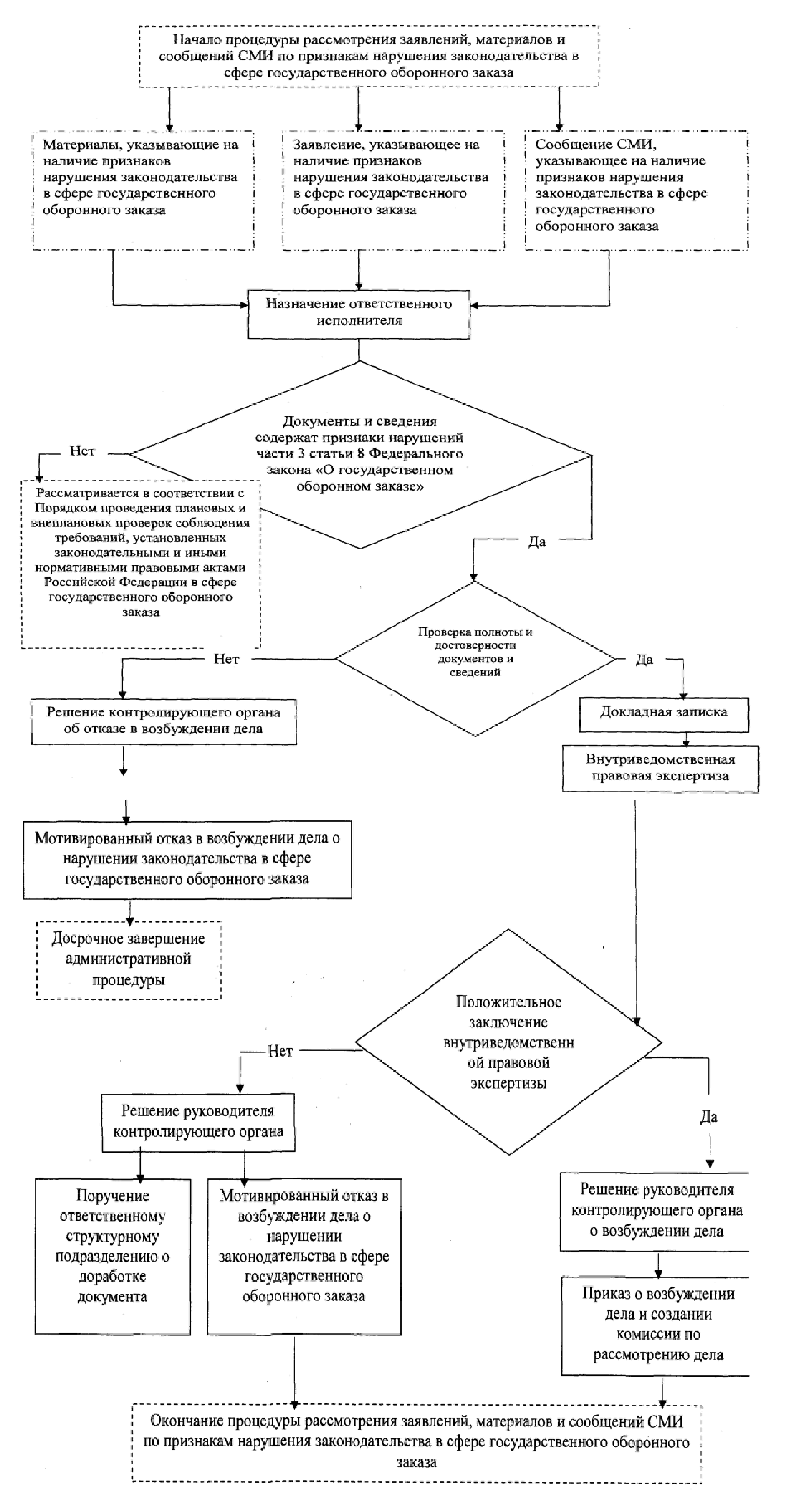 6) в Приложении № 2 Порядка заменить Блок-схему процедуры «Рассмотрение заявлений, материалов и сообщений СМИ по признакам нарушения законодательства в сфере государственного оборонного заказа» № 2 и Блок-схему процедуры «Рассмотрение дел о нарушении законодательства в сфере государственного оборонного заказа» № 3 согласно приложению.