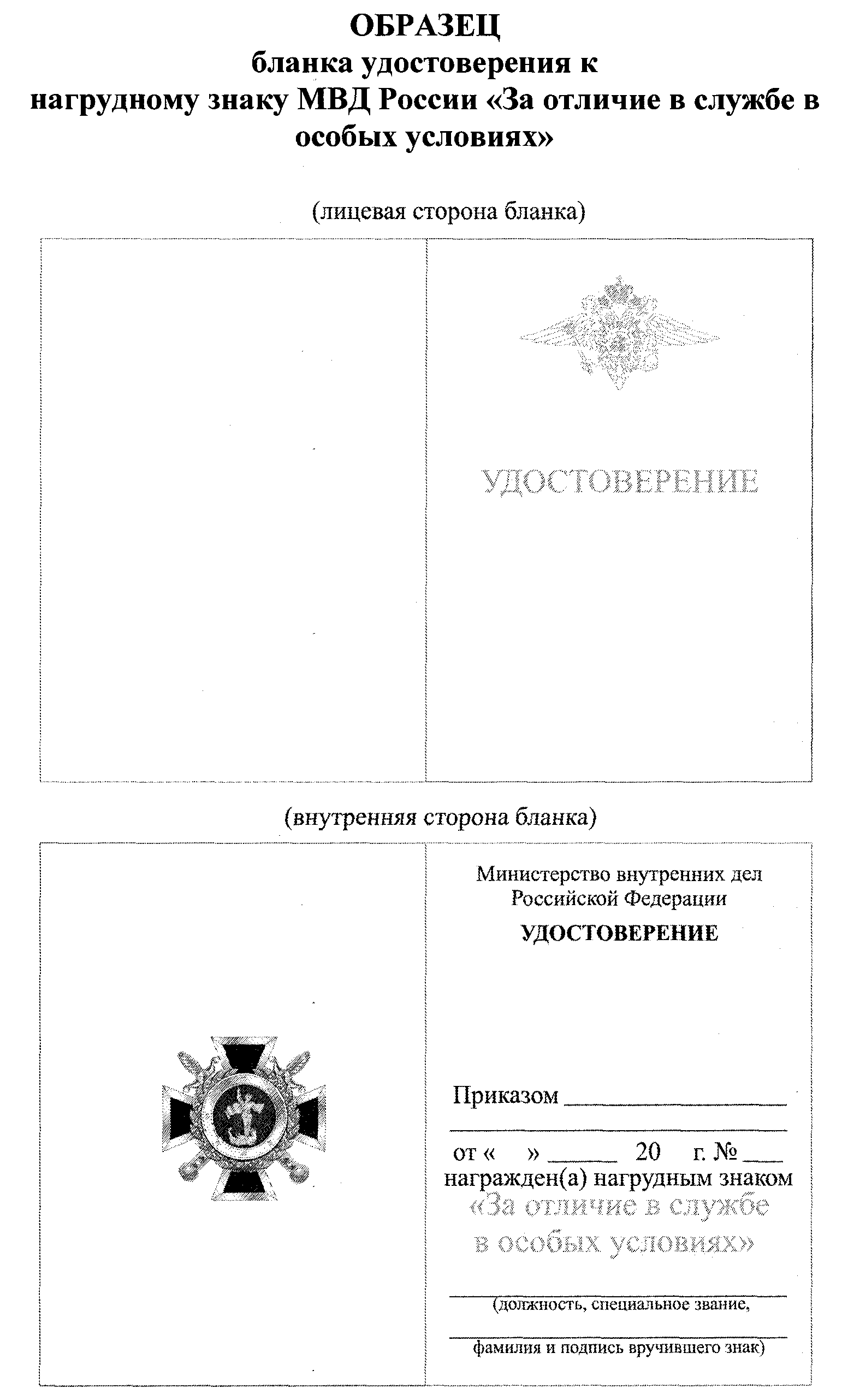 2. Описание, рисунок и образец бланка удостоверения к нагрудному знаку МВД России «За отличие в службе в особых условиях» приведены в приложениях № 1 - 3 к настоящему Положению.