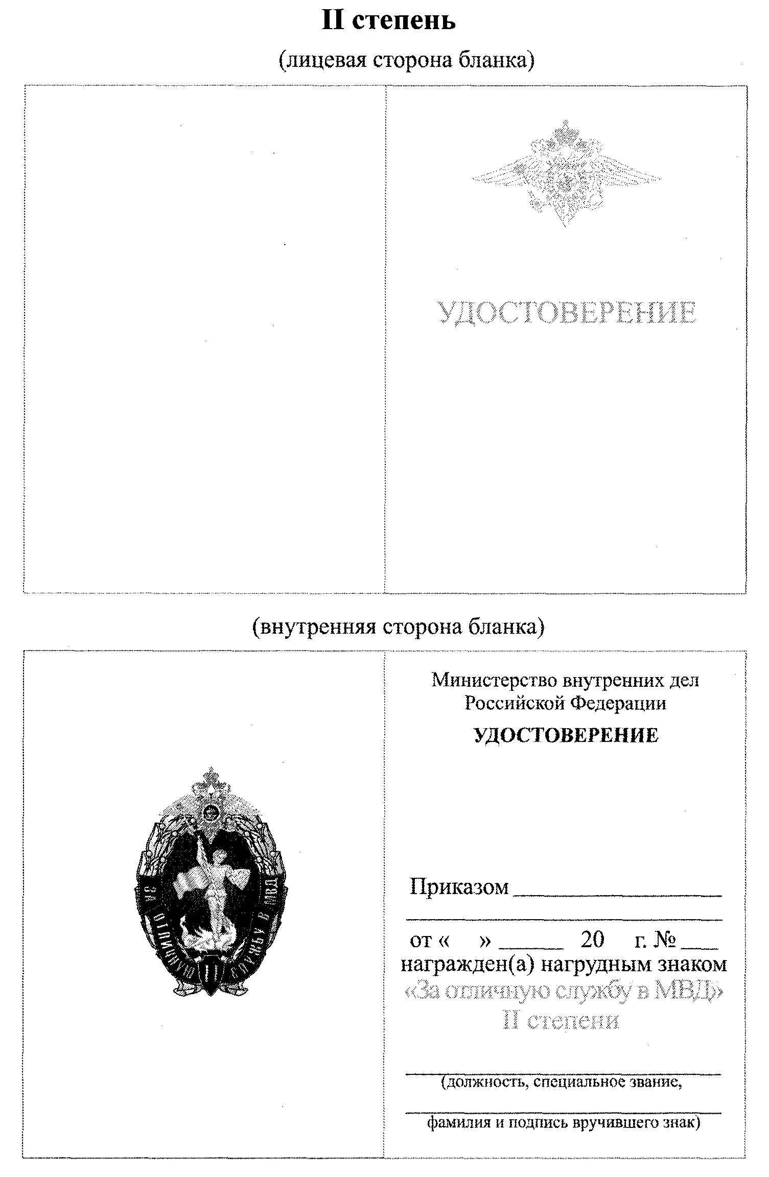2. Описание, рисунок и образец бланка удостоверения к нагрудному знаку МВД России «За отличную службу в МВД» приведены в приложениях № 1 - 3 к настоящему Положению.