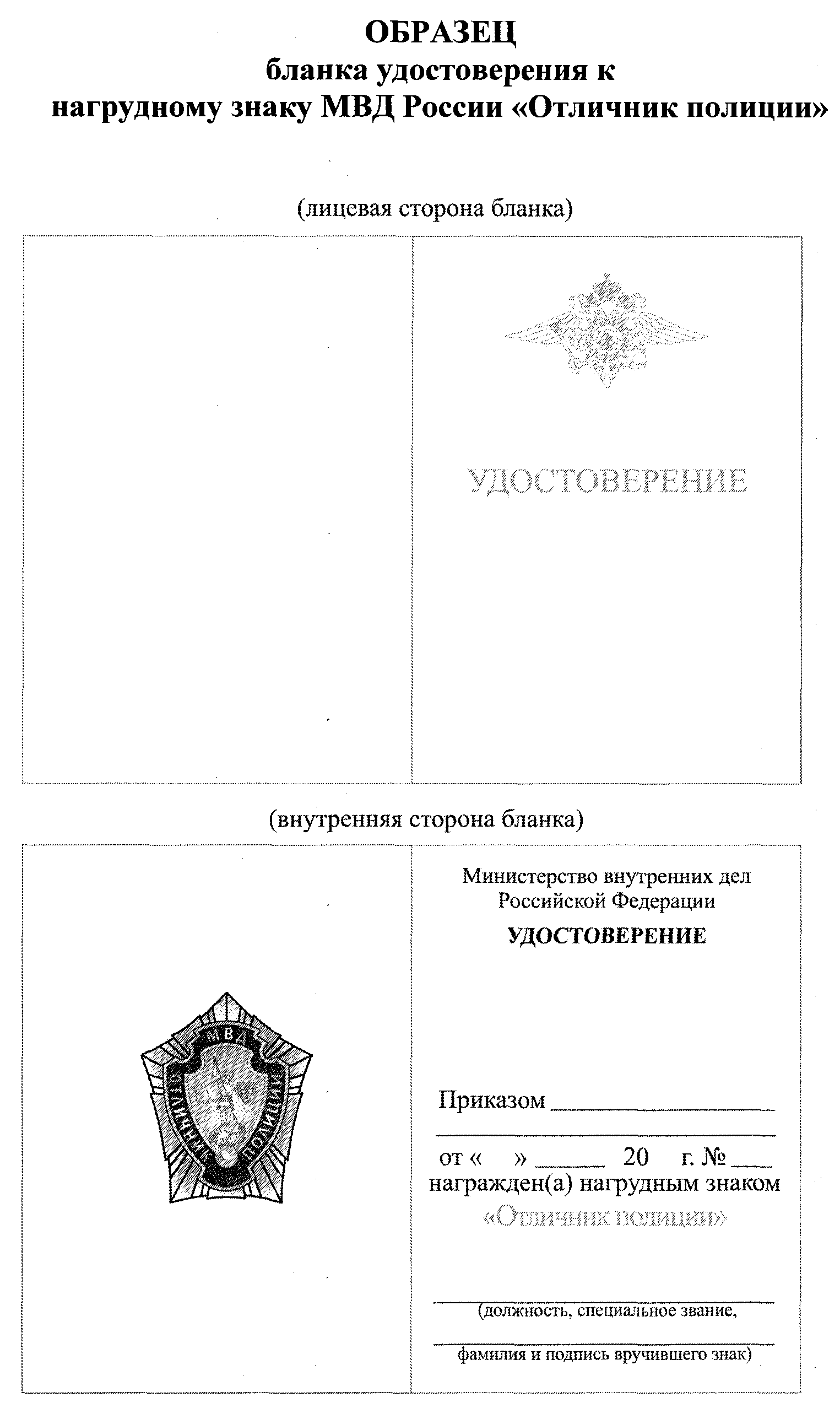 2. Описание, рисунок и образец бланка удостоверения к нагрудному знаку МВД России «Отличник полиции» приведены в приложениях № 1 - 3 к настоящему Положению.