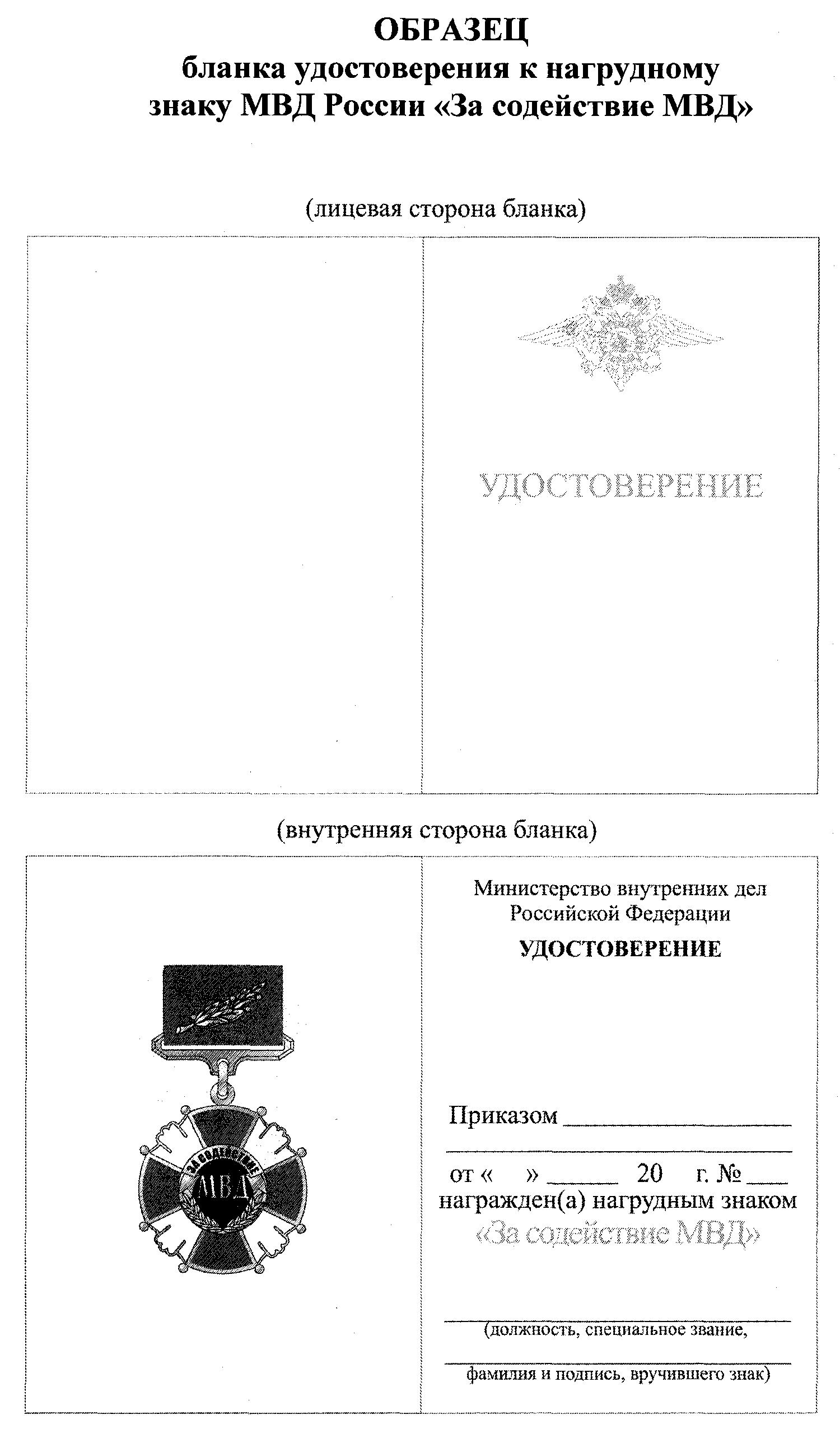 2. Описание, рисунок и образец бланка удостоверения к нагрудному знаку МВД России «За содействие МВД» приведены в приложениях № 1 - 3 к настоящему Положению.