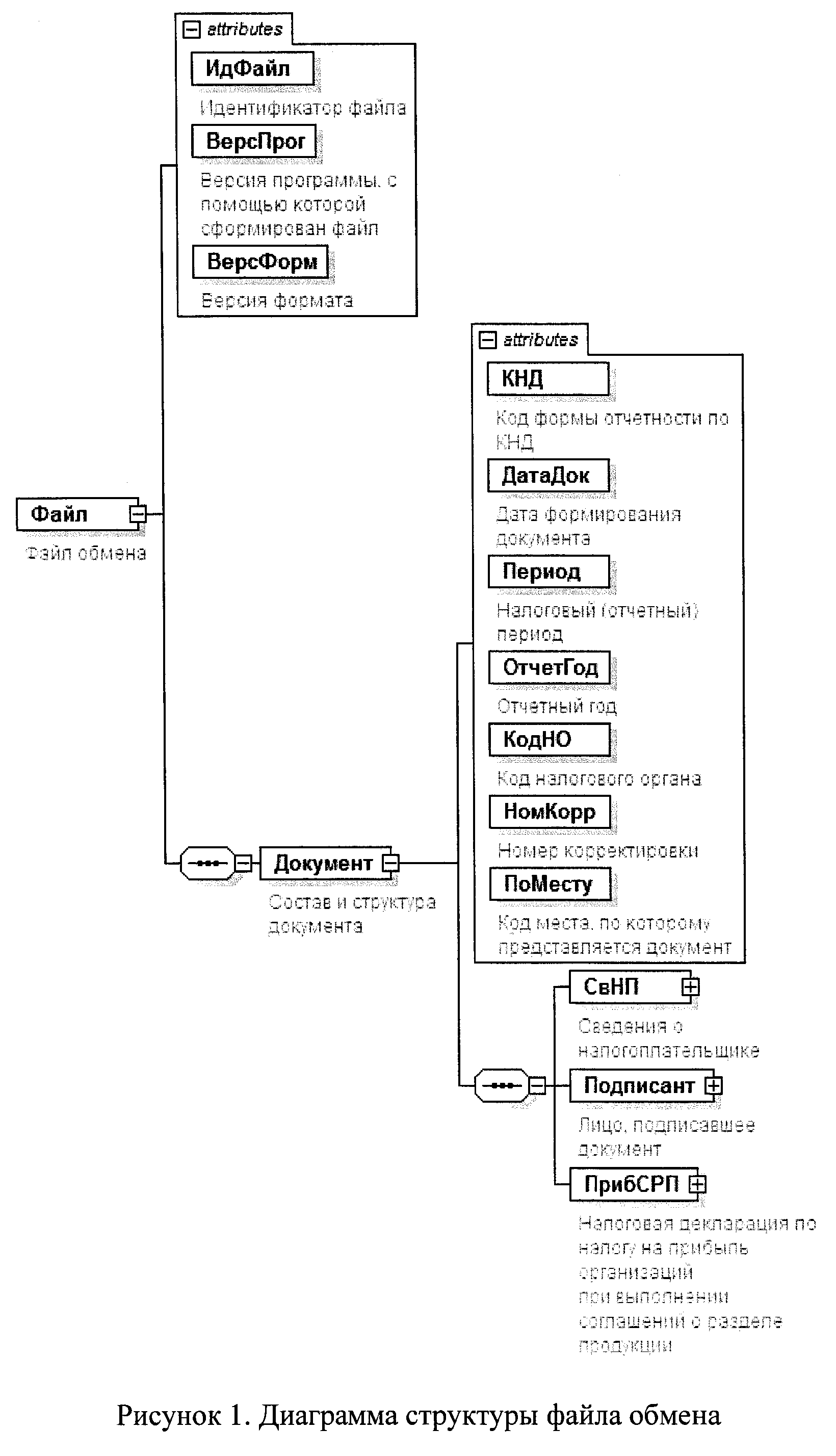 | Налоговая декларация по налогу на прибыль организаций при выполнении соглашений о разделе продукции | ПрибСРП | С | О | Состав элемента представлен в таблице 4.8 |