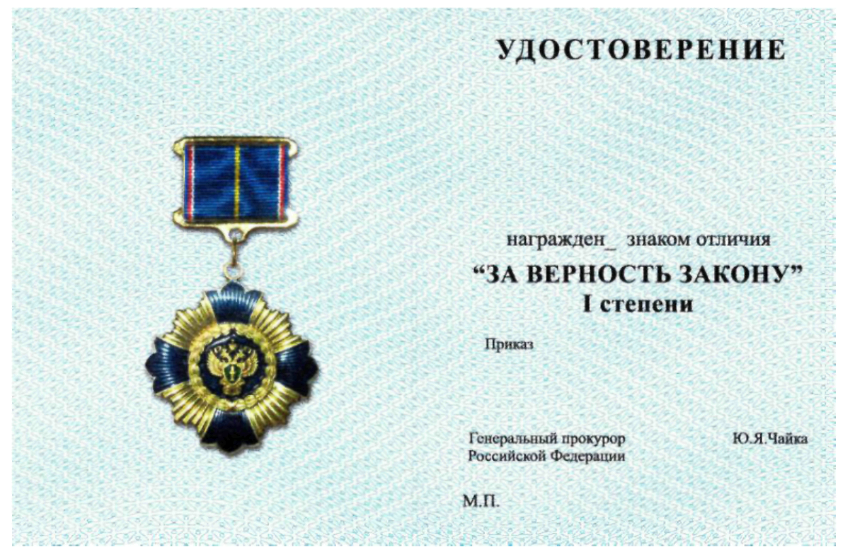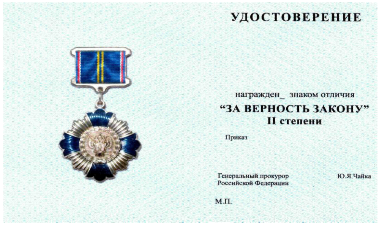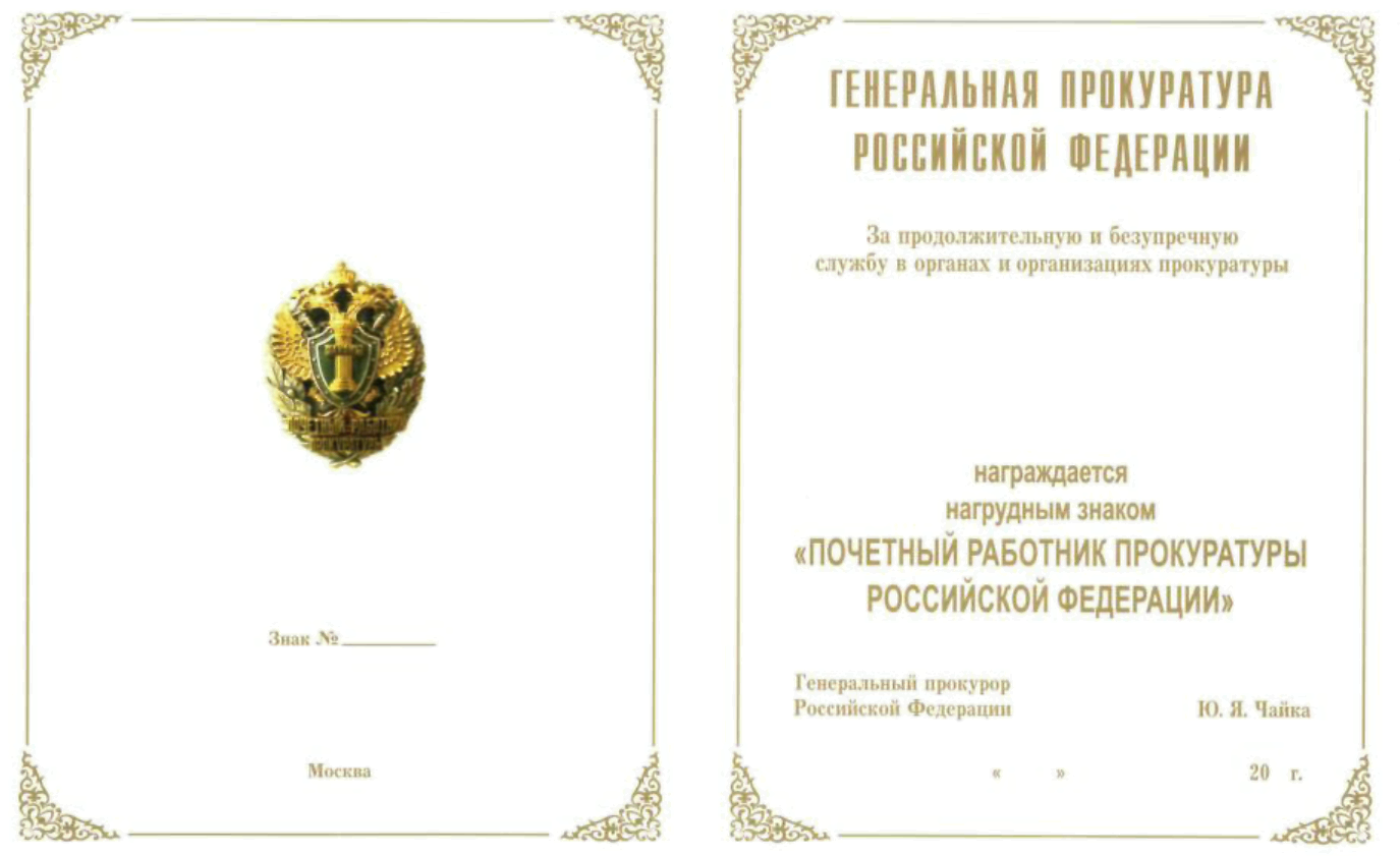 нагрудный знак «Почетный работник прокуратуры Российской Федерации»;
