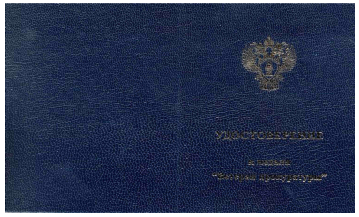Основное поле покрыто защитной тангирной сеткой бежевого цвета с геральдическим знаком - эмблемой прокуратуры Российской Федерации посередине размером 118 х 130 мм.