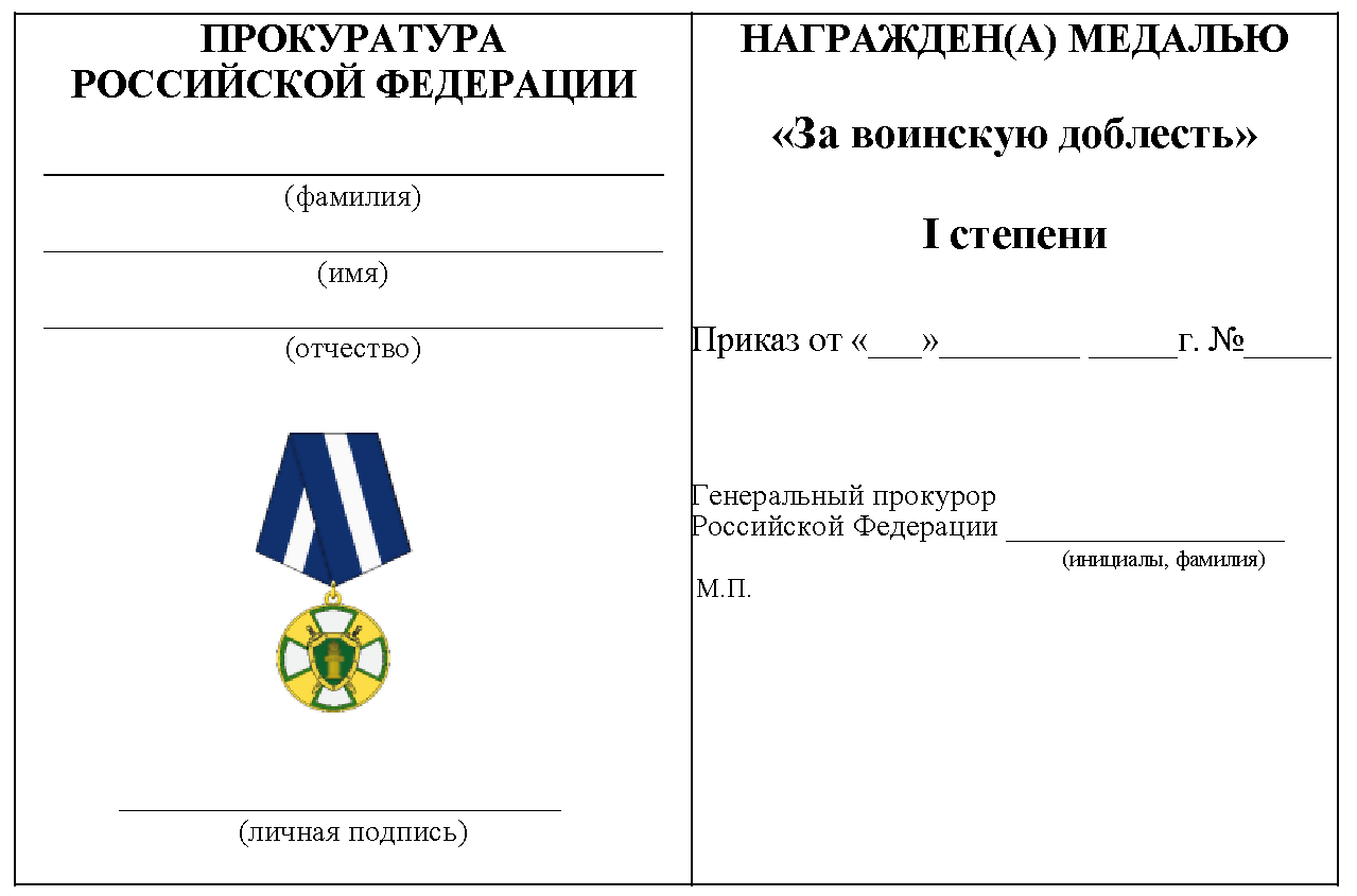 1. Медаль «За воинскую доблесть» (далее - медаль) является наградой прокуратуры Российской Федерации.