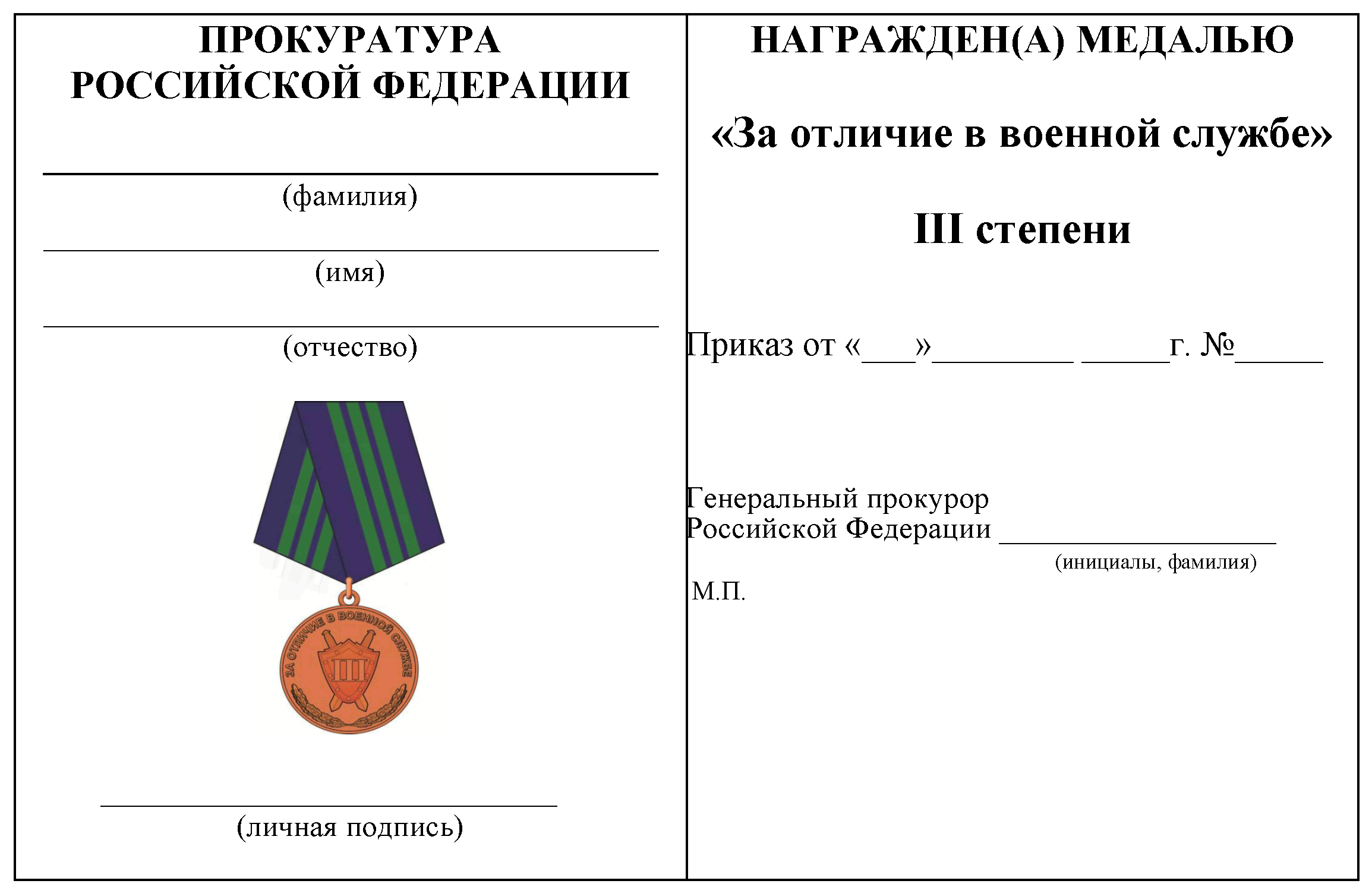 1. Медаль «За отличие в военной службе» (далее - медаль) является наградой прокуратуры Российской Федерации.