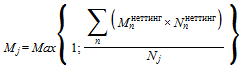 определяется в рамках каждого соглашения о неттинге по ПФИ как большее из двух значений - один год или средневзвешенный по номинальной контрактной стоимости фактический срок до истечения j-го ПФИ (j-го соглашения о неттинге по ПФИ) - по формуле: