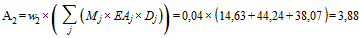 , которое представляет собой сумму произведений дисконта (Dj) на срок до истечения ПФИ (Mj) и на величину, подверженную риску (EAj), по всем ПФИ с i-ым контрагентом, умноженную на весовой коэффициент риска контрагента из таблицы абзаца седьмого пункта 4 настоящего приложения.