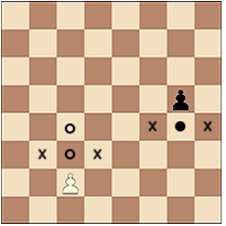 3.1.2. Фигура нападает на фигуру соперника, если в соответствии со Статьями 3.2-3.8 эта фигура может взять фигуру соперника на этом поле.
