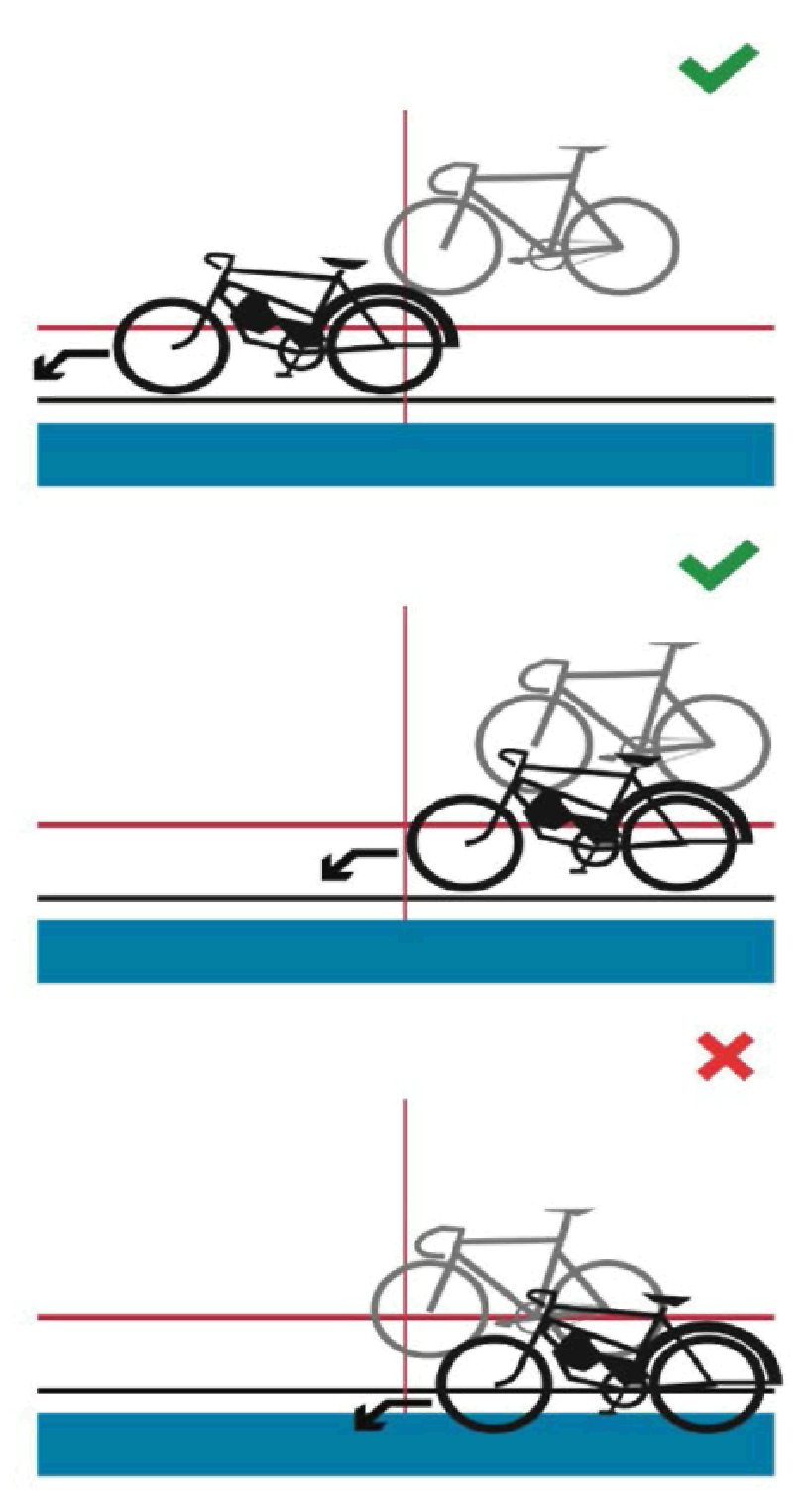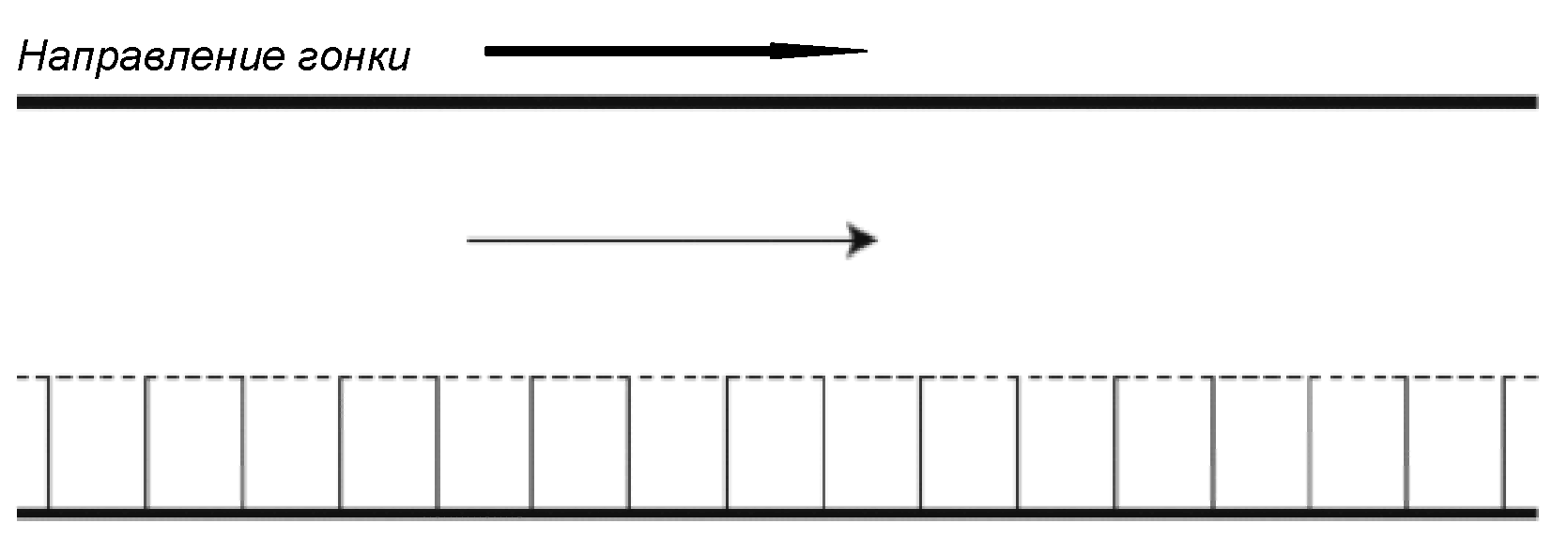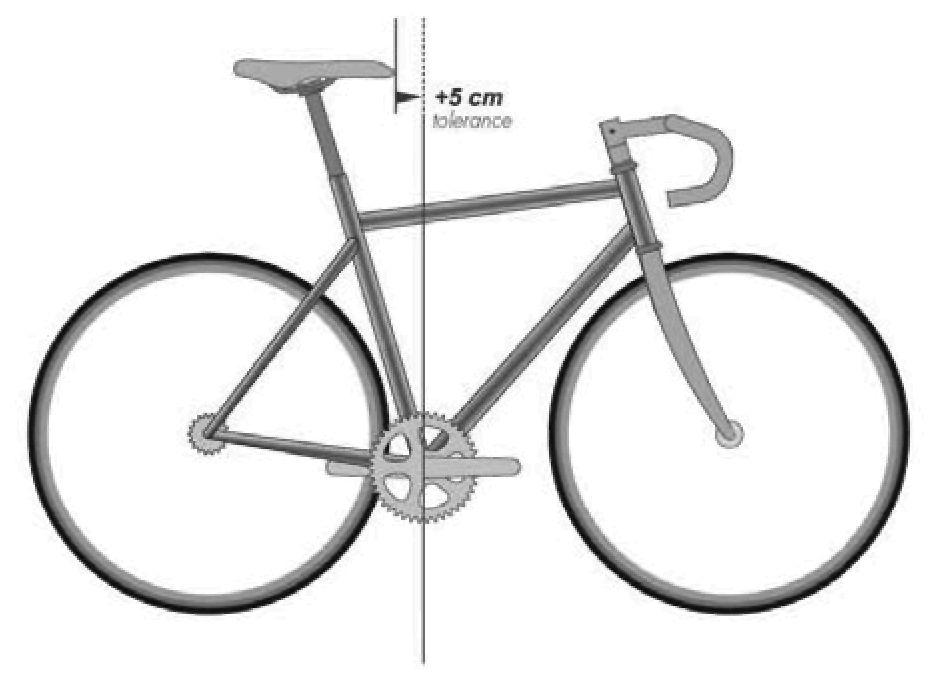 Проезд под или над ограждающей лентой, обрыв ленты и стрелок (5 штрафных баллов). Габаритами велосипеда служат оси втулок и продольная ось рамы.