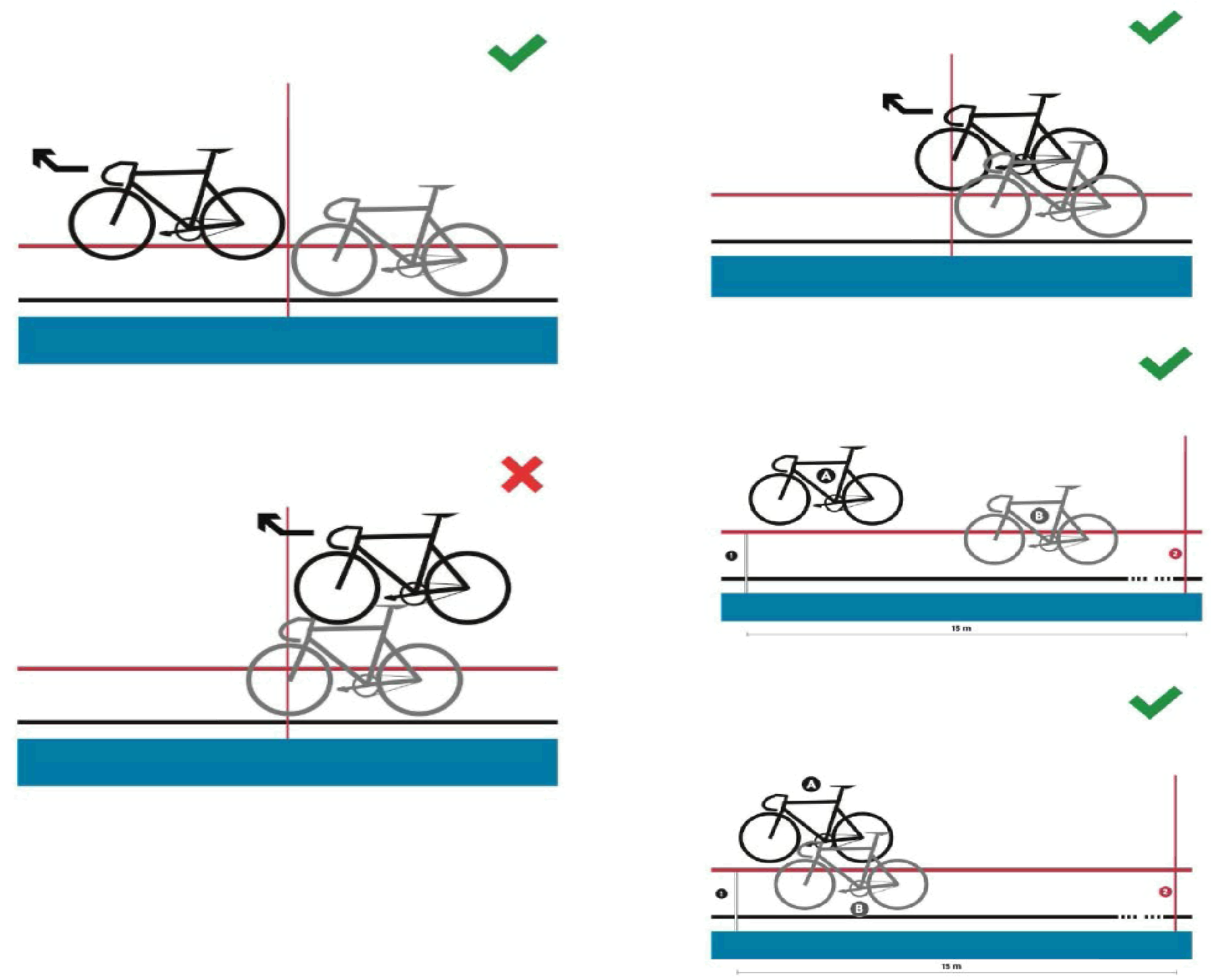 Пересечение линии засчитывается только в том случае, если хотя бы одна ось колёс проходит выше уровня стрелки или линии ворот. Если обе оси пересекают линию ниже уровня стрелки, пересечение линии не засчитывается. Пересечение двумя осями ниже уровня стрелок разрешается для всех остальных категорий.
