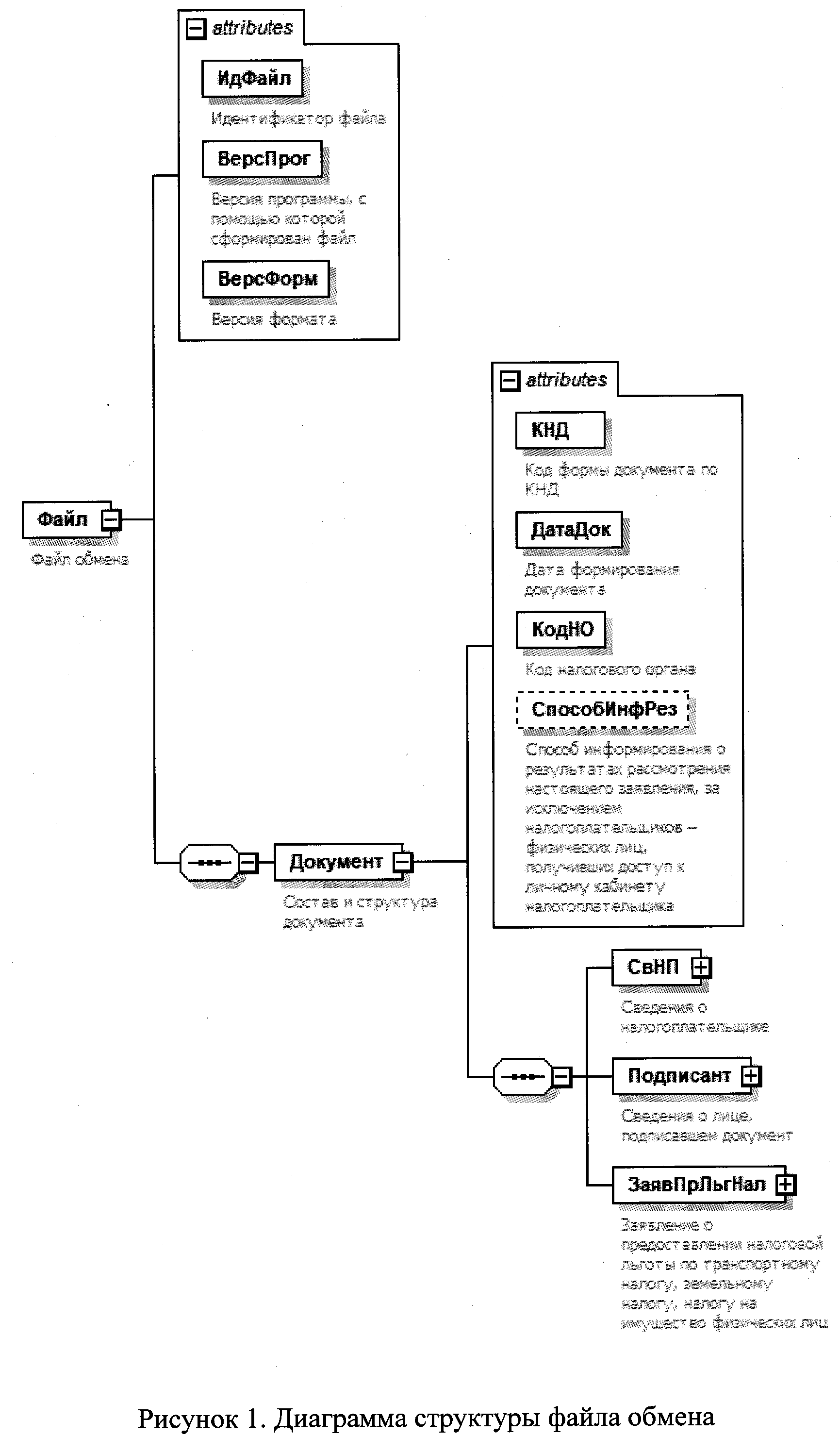 | Заявление о предоставлении налоговой льготы по транспортному налогу, земельному налогу, налогу на имущество физических лиц | ЗаявПрЛьгНал | С | О | Состав элемента представлен в таблице 4.9 |