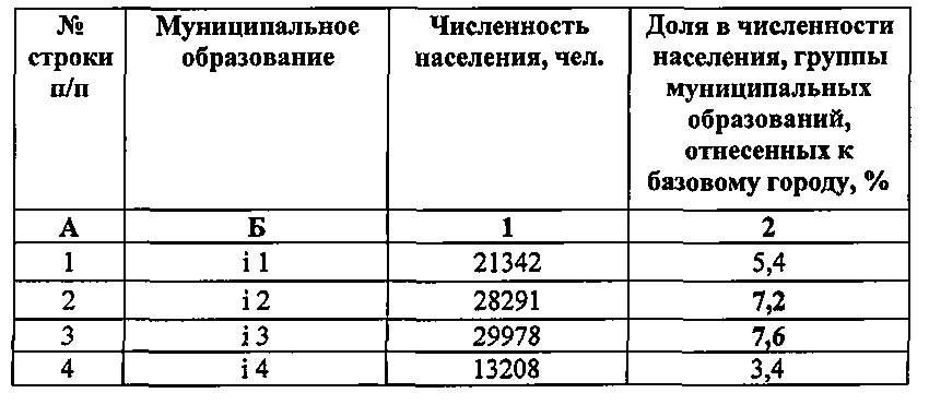 В тех случаях, когда численность населения базового города, входит в общую численность муниципального района, при проведении расчетов этот показатель по муниципальному району учитывается за вычетом численности базового города;