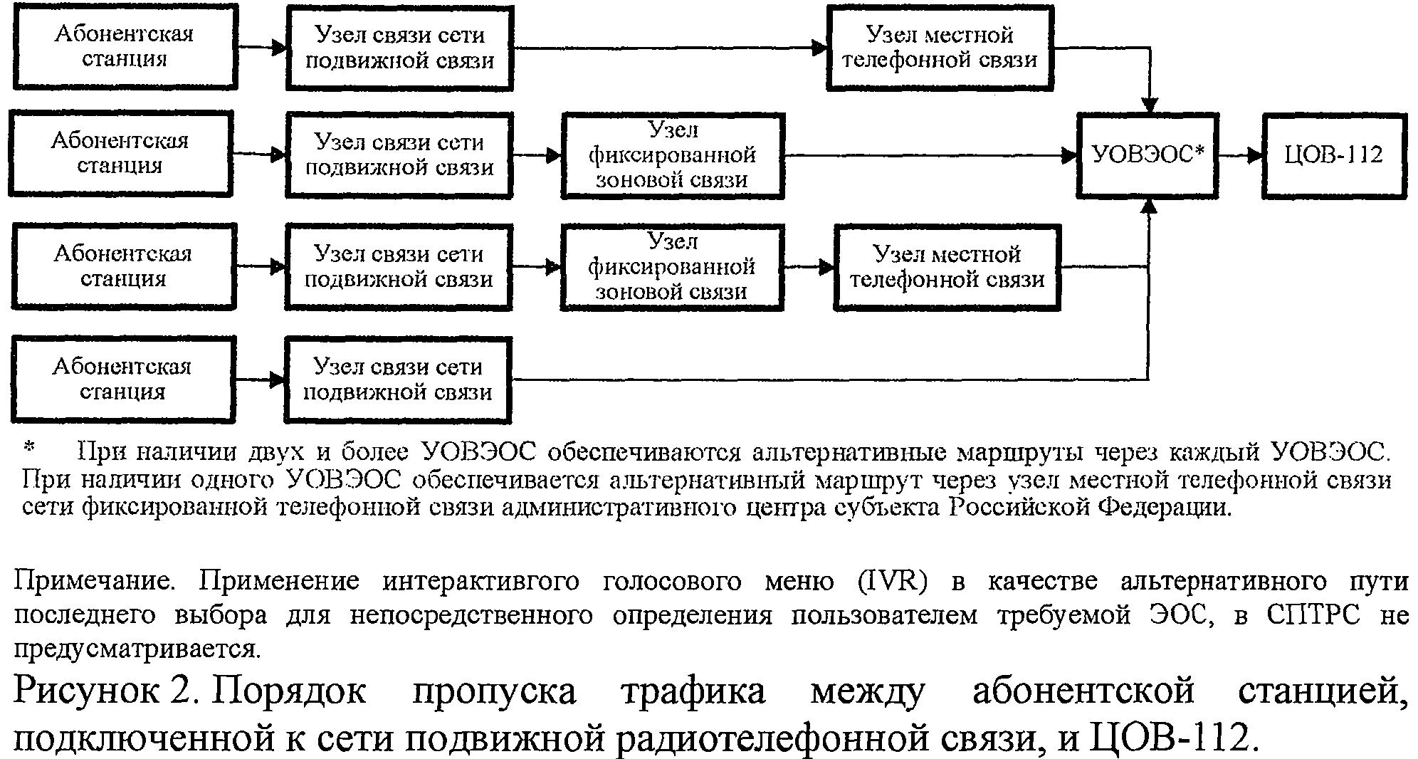 8.2. При наличии двух или более УОВЭОС на местной сети фиксированной телефонной связи административного центра субъекта Российской Федерации, для каждого пользователя ССОП предусматриваются альтернативные маршруты доведения вызова в Систему-112, обеспечивающие возможность пропуска трафика через каждый из УОВЭОС.