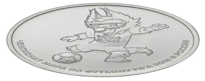 - монеты в специальном исполнении (каталожный № 5015-0019) - выполненное в цвете изображение талисмана чемпионата мира по футболу FIFA 2018 в России; внизу по окружности имеется надпись - "ЧЕМПИОНАТ МИРА ПО ФУТБОЛУ FIFA 2018 В РОССИИ".