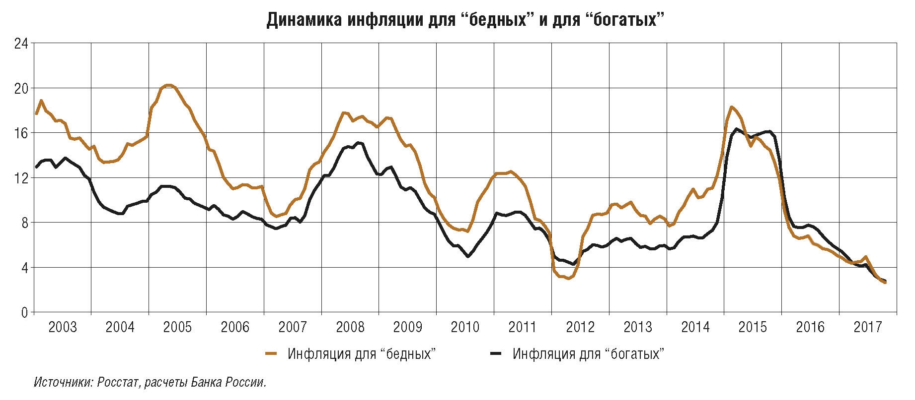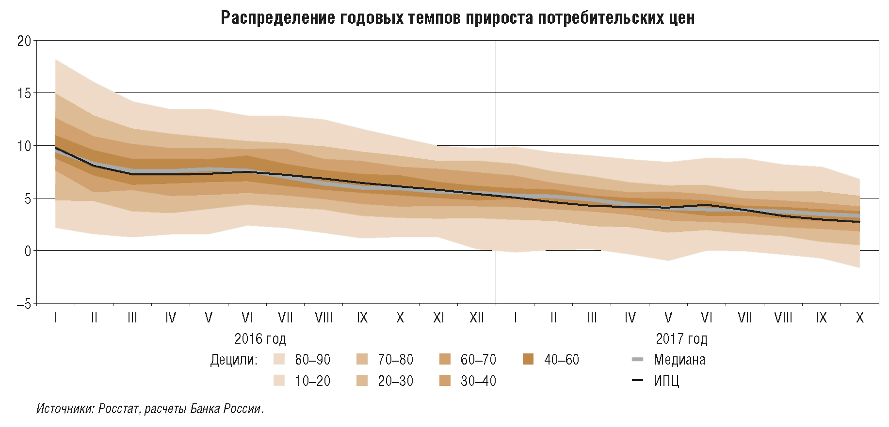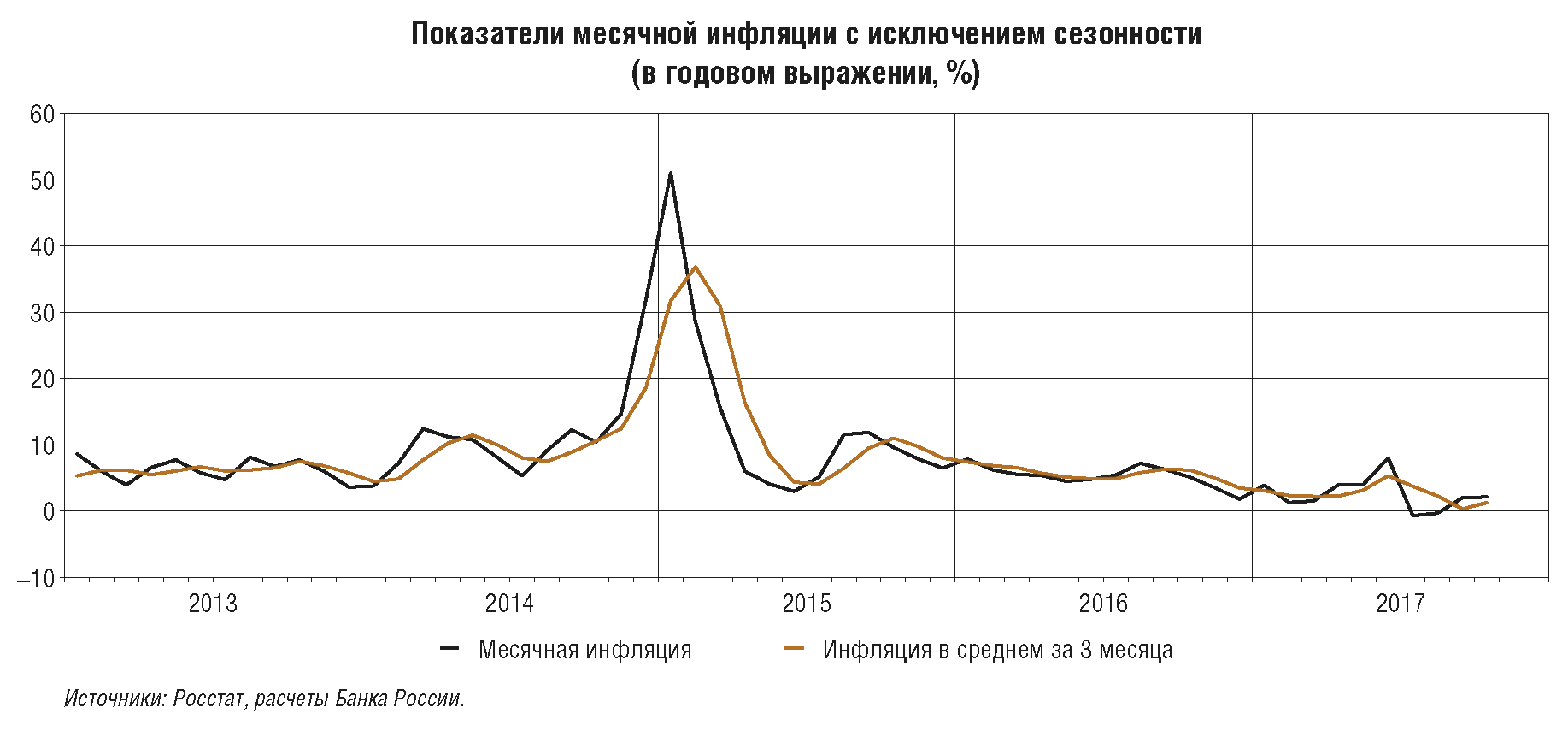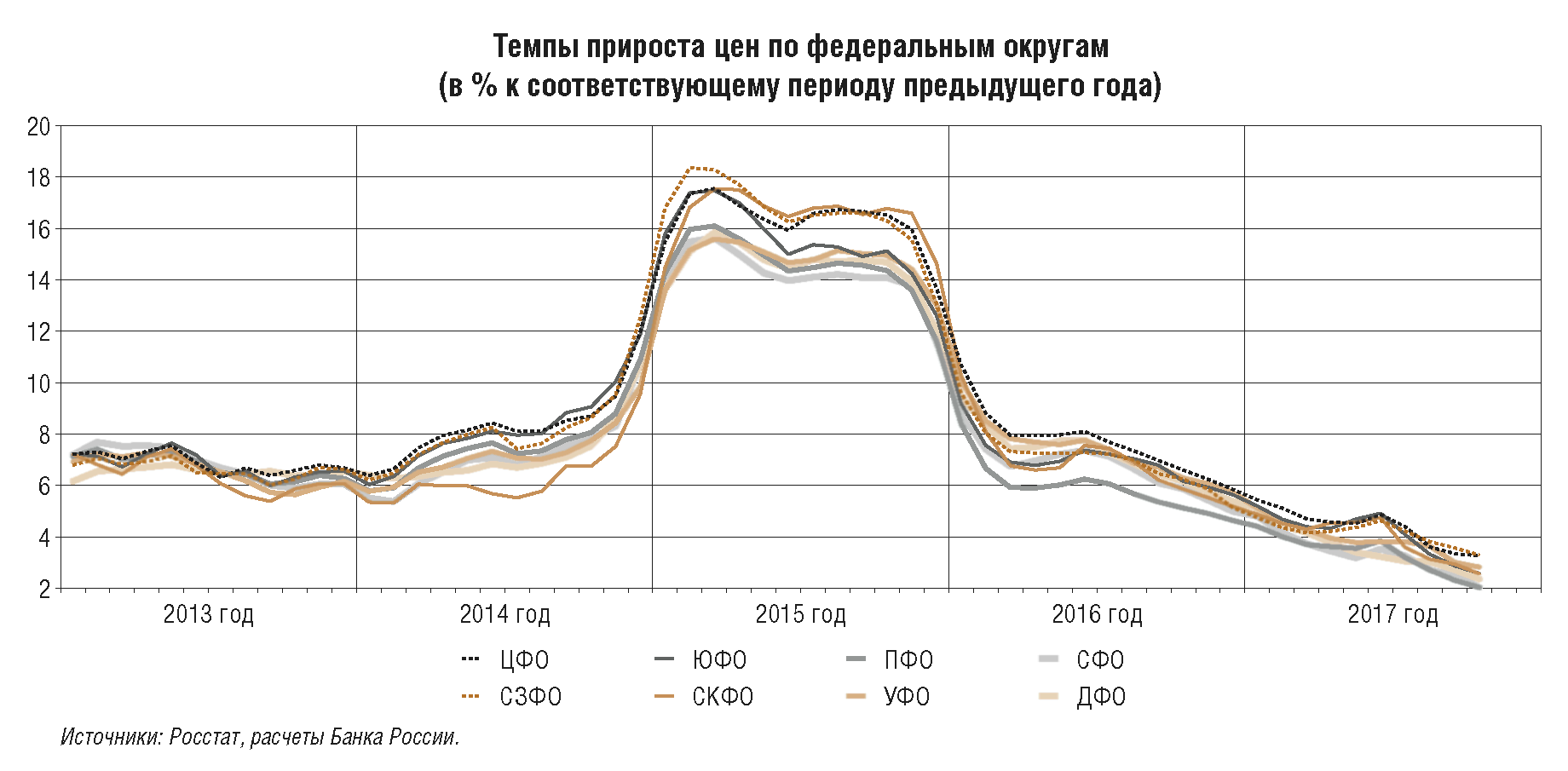 В предыдущие два года Банк России обеспечил снижение инфляции с двузначных уровней до цели 4%, проводя умеренно жесткую денежно-кредитную политику. В течение большей части 2017 г. темпы прироста потребительских цен уже находятся вблизи 4%. Но по сути это только начало пути к обеспечению ценовой стабильности, когда цель по инфляции 4% станет надежным ориентиром для всех участников экономических отношений. На это требуется достаточно длительное время, что, в частности, подтверждает опыт других стран.