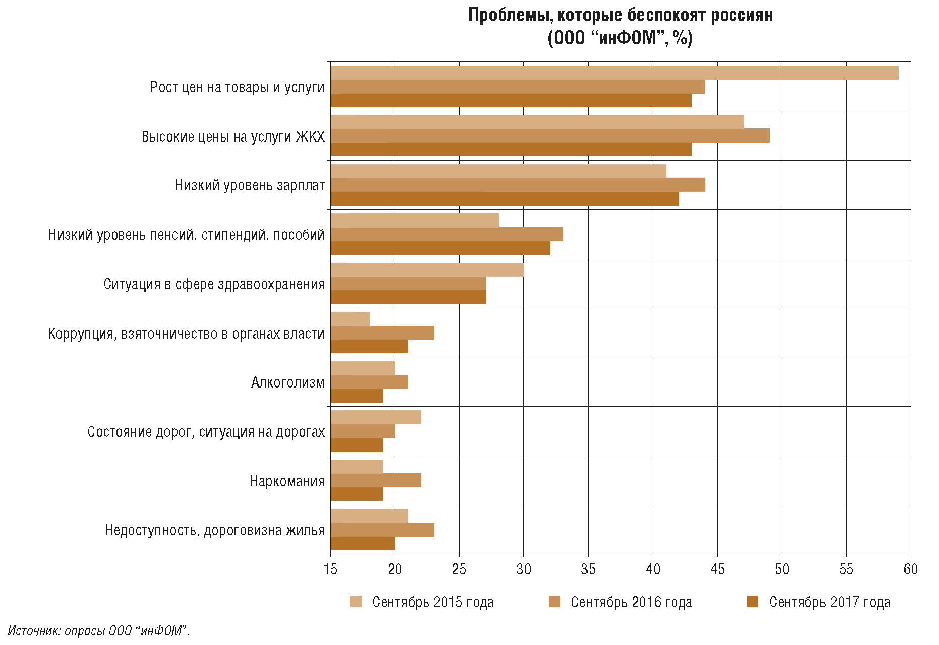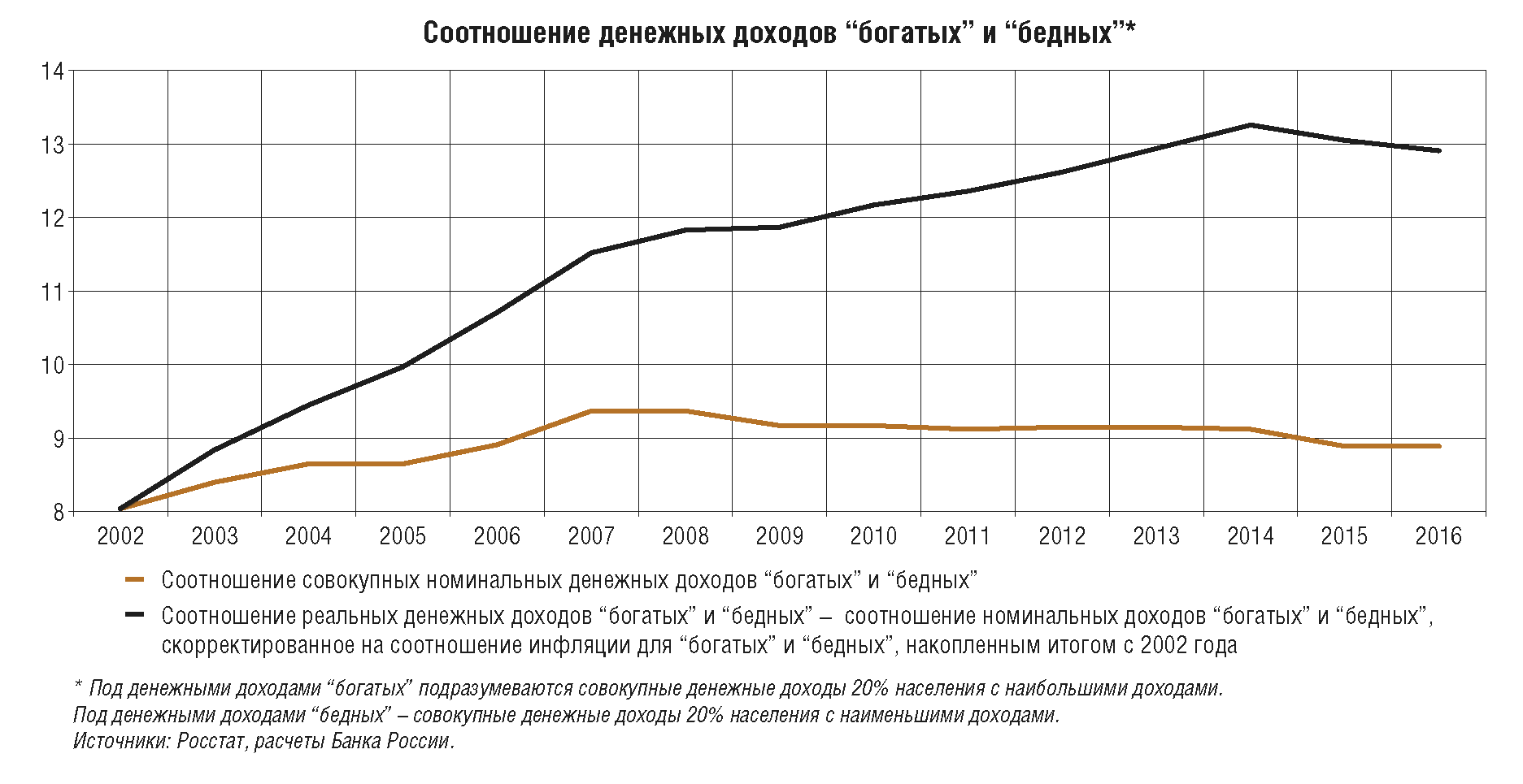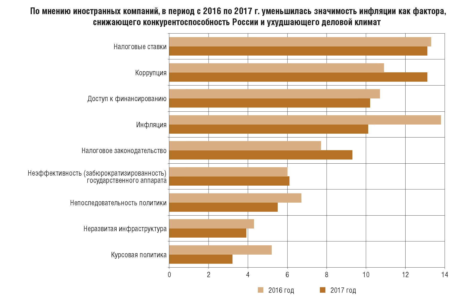 Низкие темпы роста цен и предсказуемые финансовые условия до тех пор, пока они поддерживаются, как правило, незаметны. При этом высокая инфляция, подверженная существенным колебаниям, и связанная с ней неопределенность создают препятствия для устойчивого развития, усиливая социальную напряженность и дифференциацию доходов, снижая конкурентоспособность отечественных товаров, затрудняя хозяйственную, финансовую и инвестиционную деятельность. Это в том числе подтверждают данные регулярных социологических опросов, отражающие высокую обеспокоенность проблемой инфляции как населения, так и бизнеса в предыдущие годы (приложение 2). По мере того как Банком России было обеспечено снижение годовой инфляции к уровням, близким к 4%, в 2017 г., острота проблемы высокой инфляции, по данным указанных опросов, постепенно спадает.