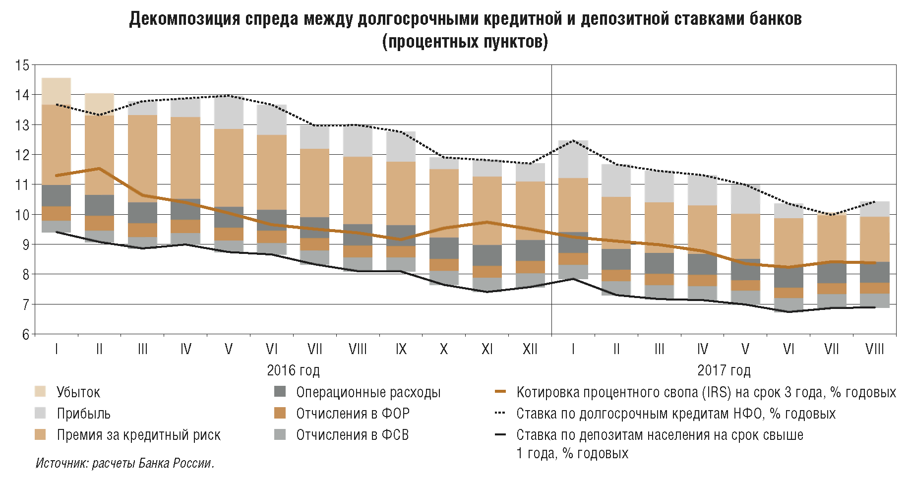 Наряду с усилением роли информационных сигналов Банка России в формировании кривой доходности на финансовом рынке, в 2017 г. в российском финансовом секторе наблюдаются определенные тенденции, влияющие на механизмы формирования стоимости заимствований для конечных заемщиков, депозитные ставки и, соответственно, трансмиссию денежно-кредитной политики.